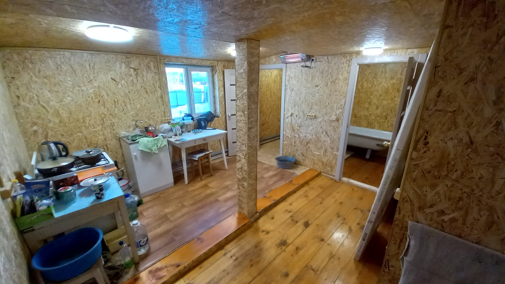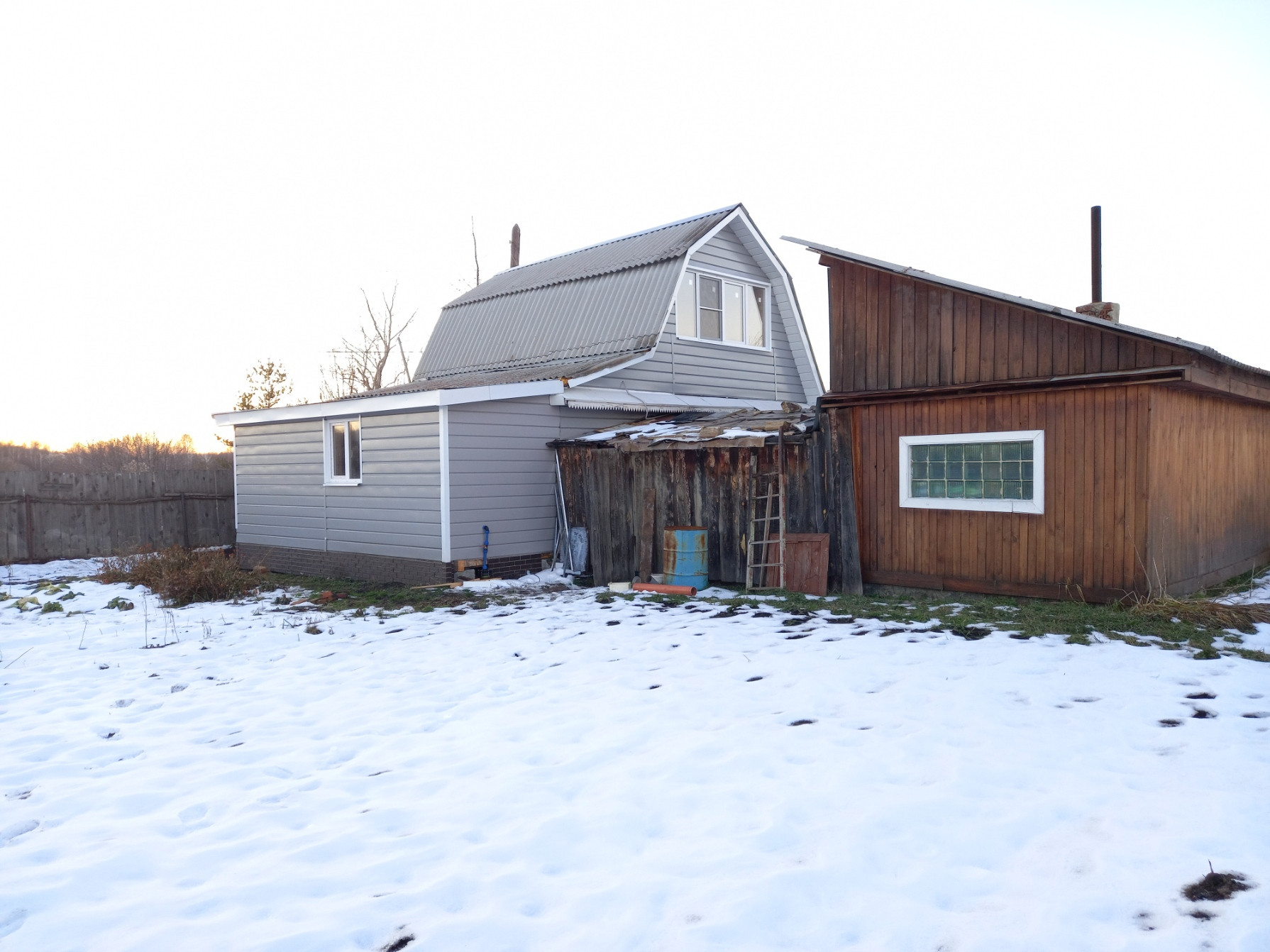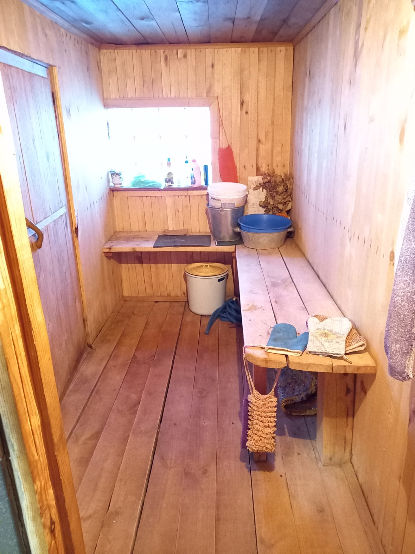 На участке старые деревья и кусты все вырублены, площадь бани 18 квадратных метров с мойкой парилкой и зоной отдыха.