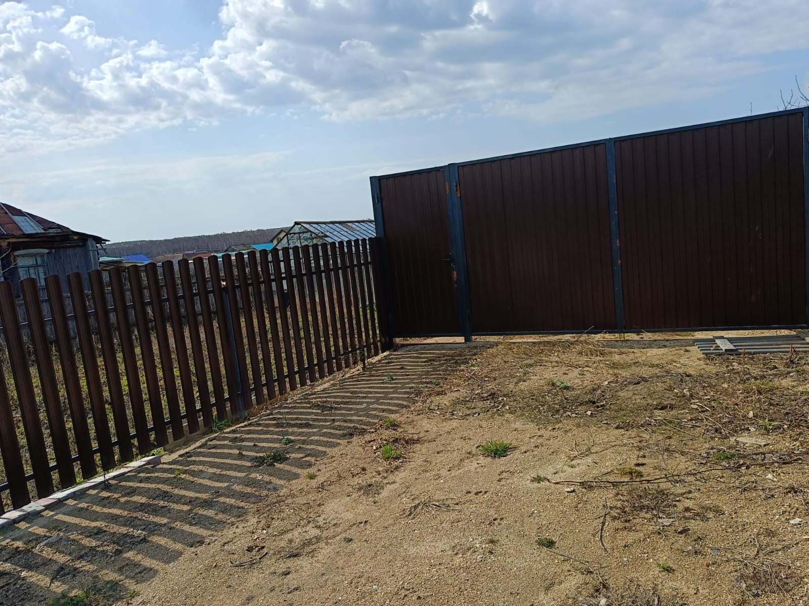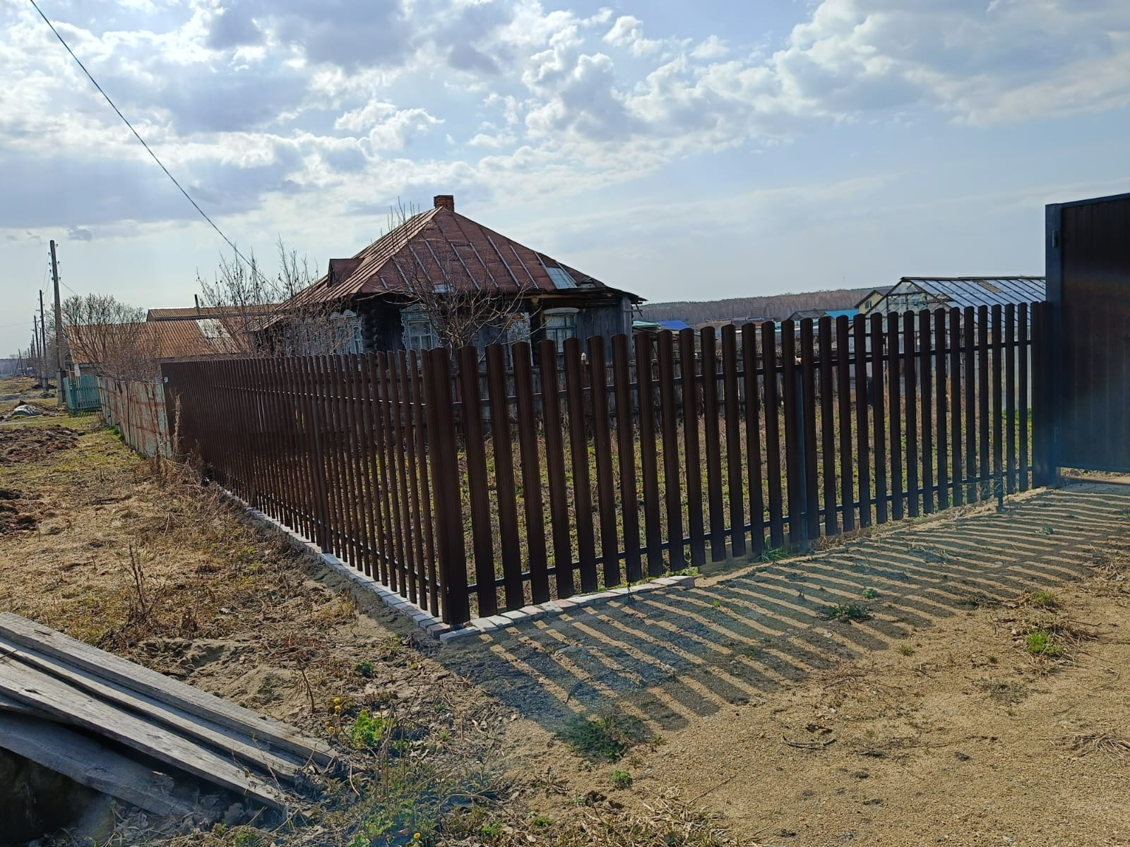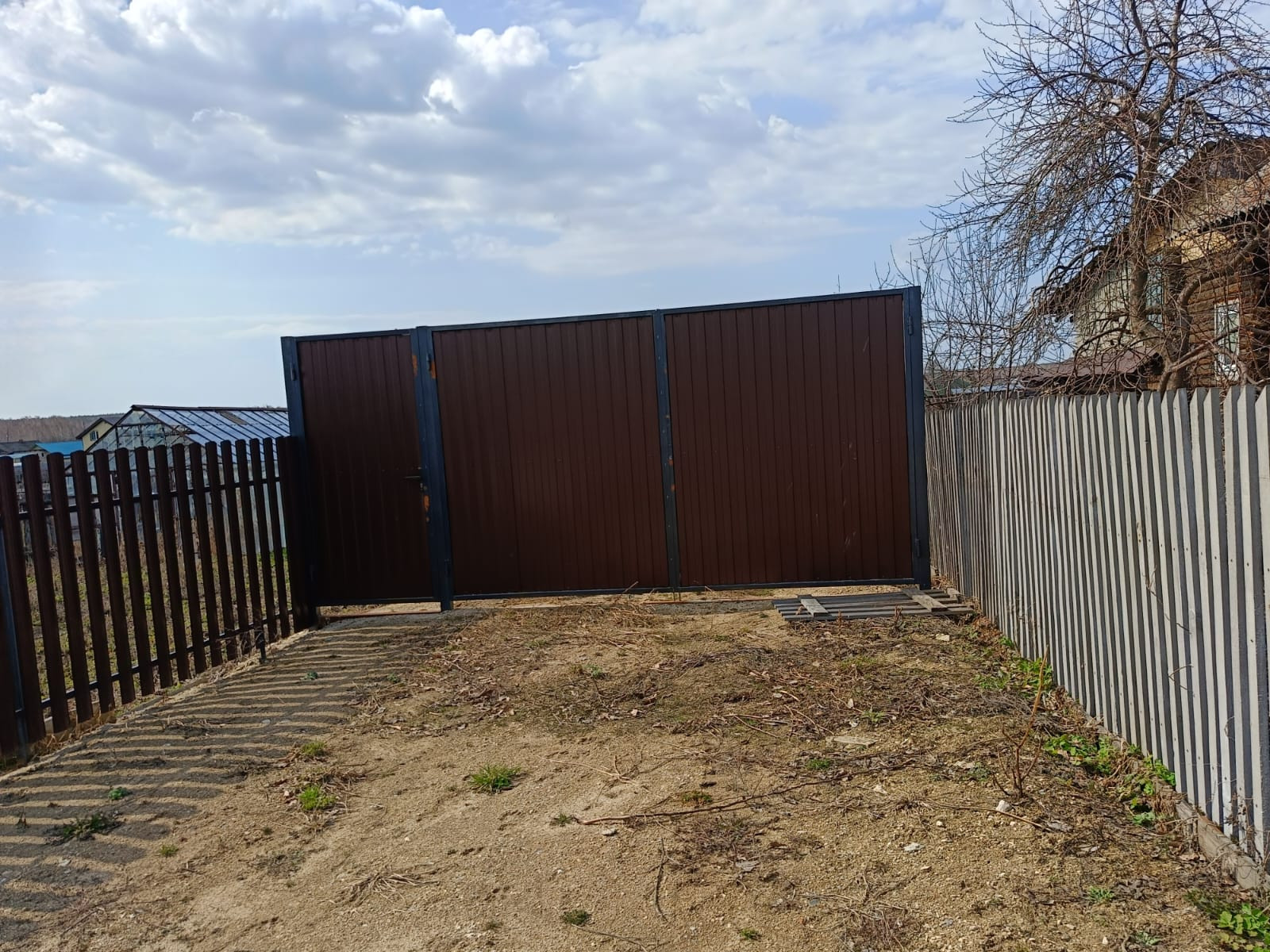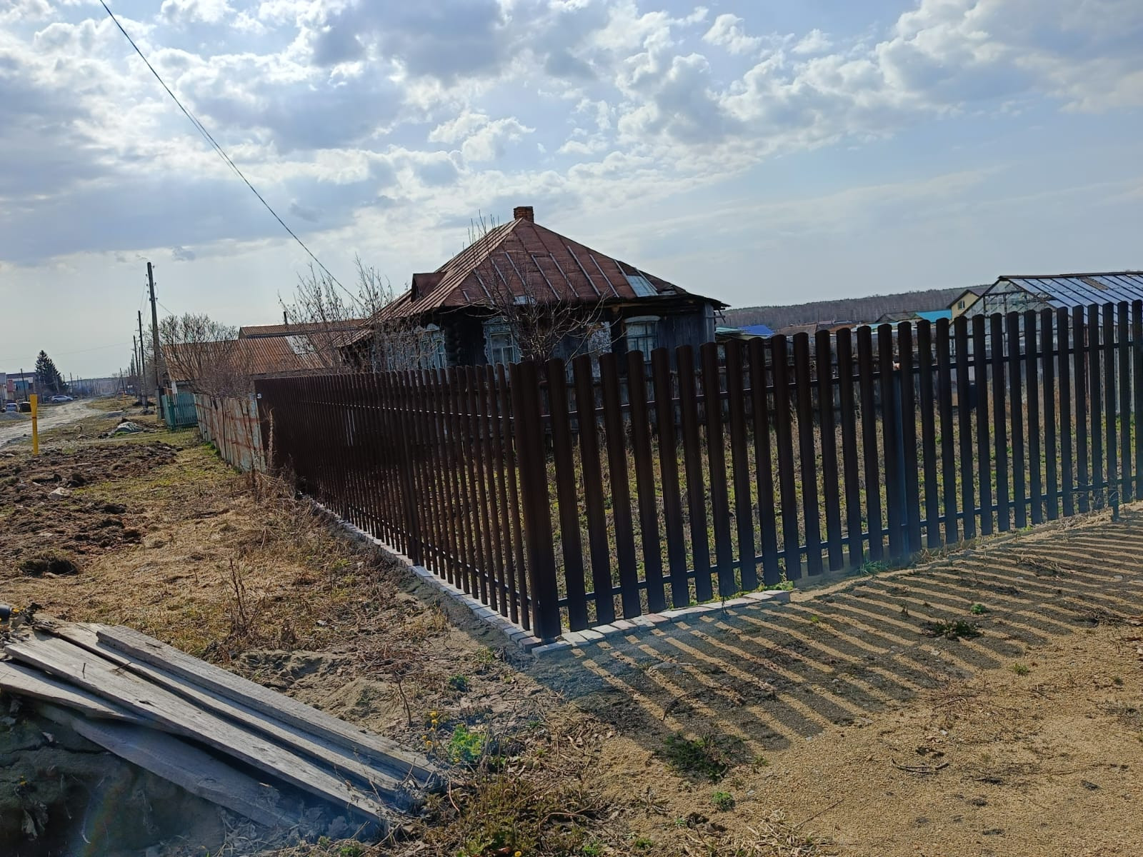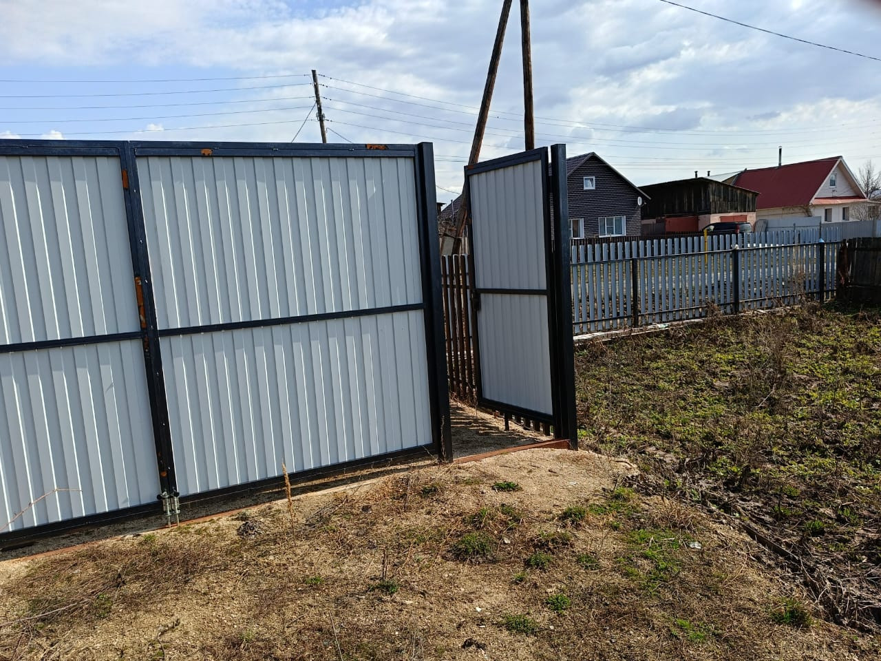 Продам участок на жилой улице. Участок обнесен забором из металлического штакетника, ворота глухие, из профнастила.