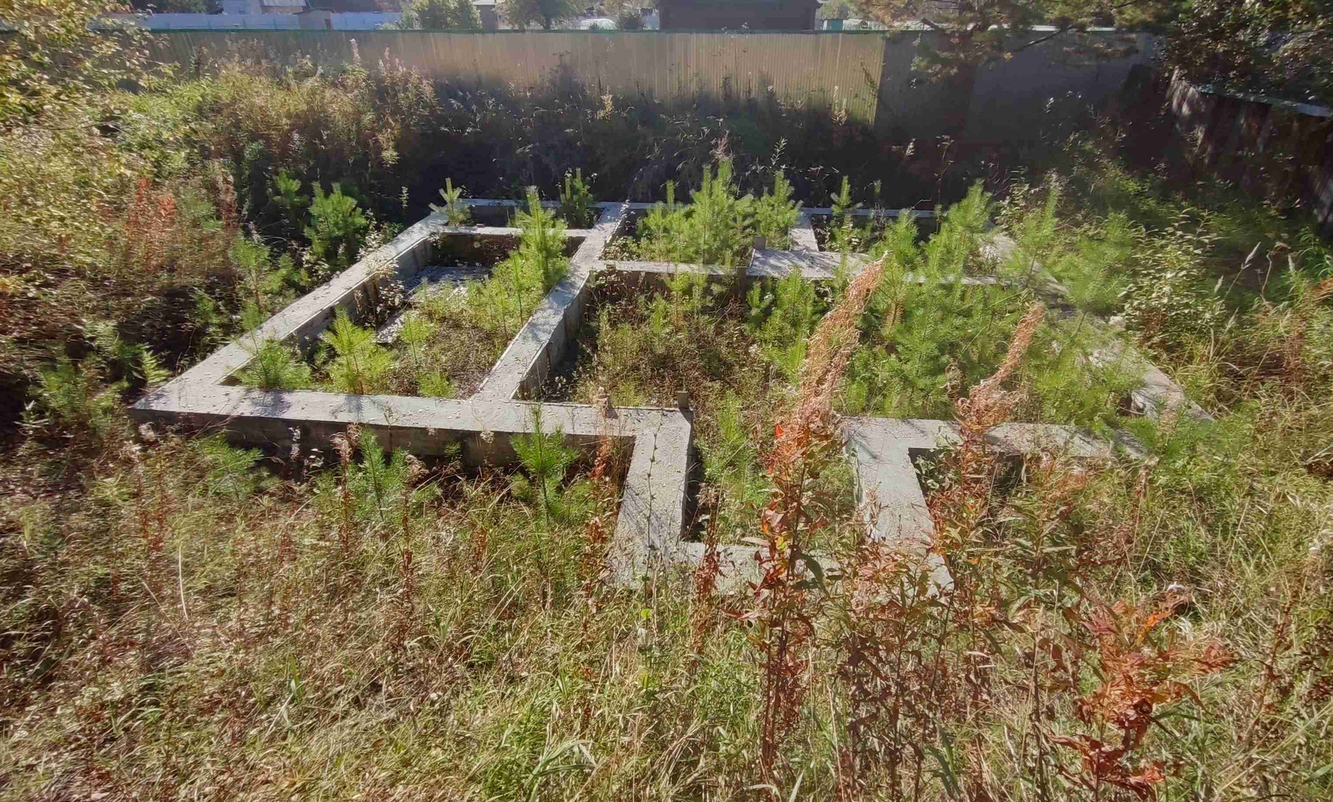На участке имеется фундамент 7×9  (изначально была запланирована большая баня ), скважина .