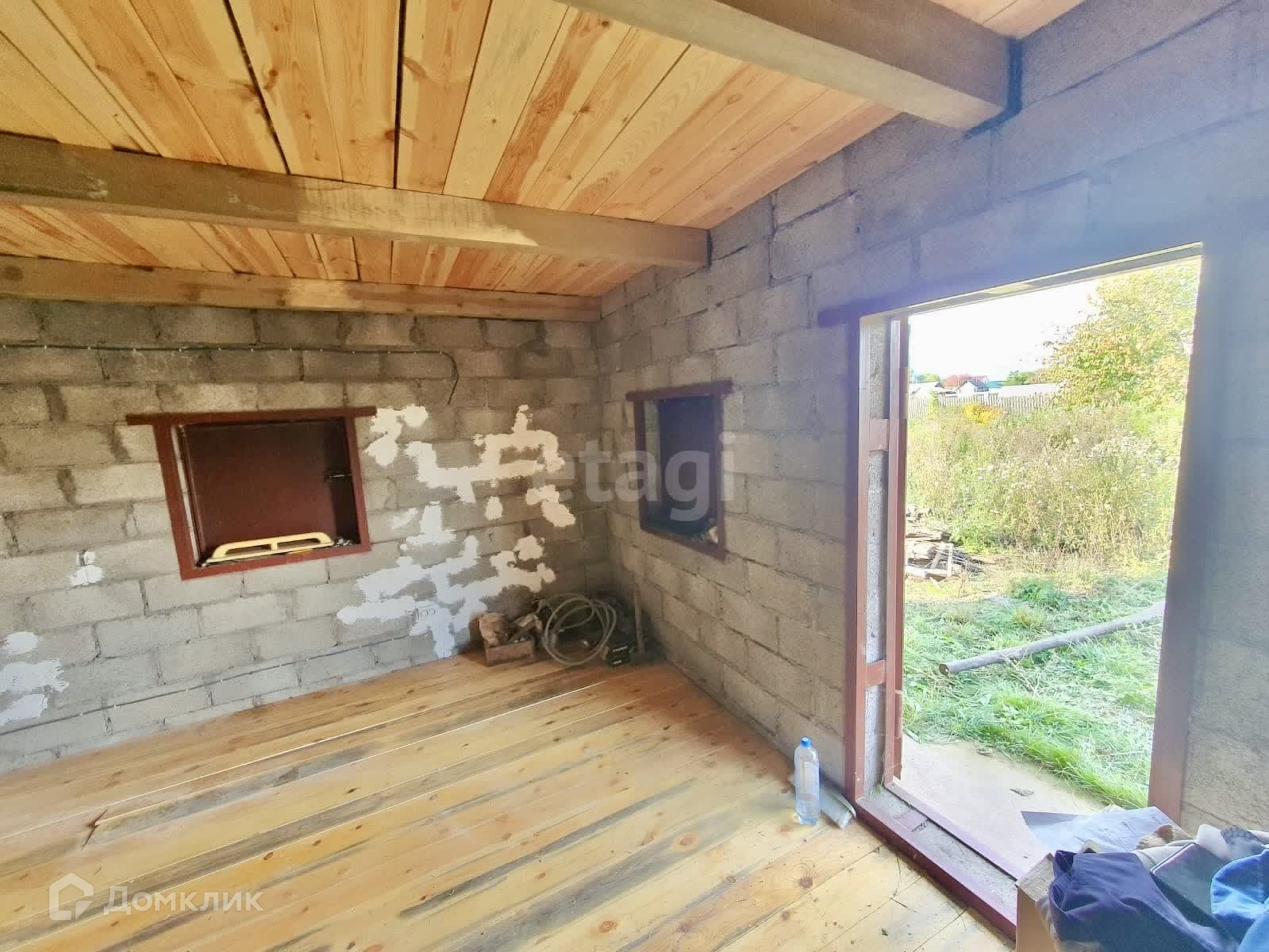 На участке имеется большой гараж из шлакоблока с хозблоком 2016 года постройки 11×6 м.