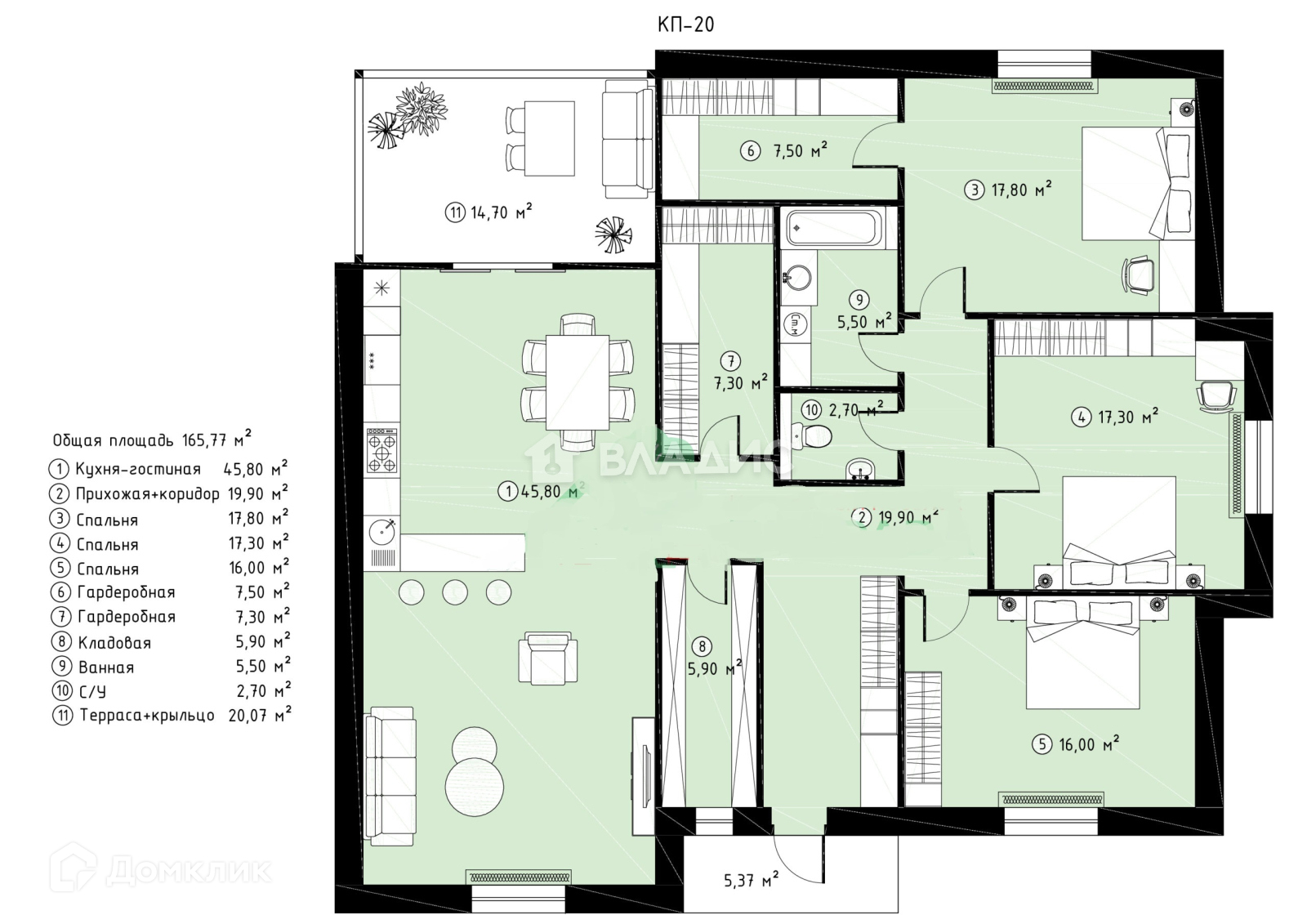 Общая площадь 165.8 м2