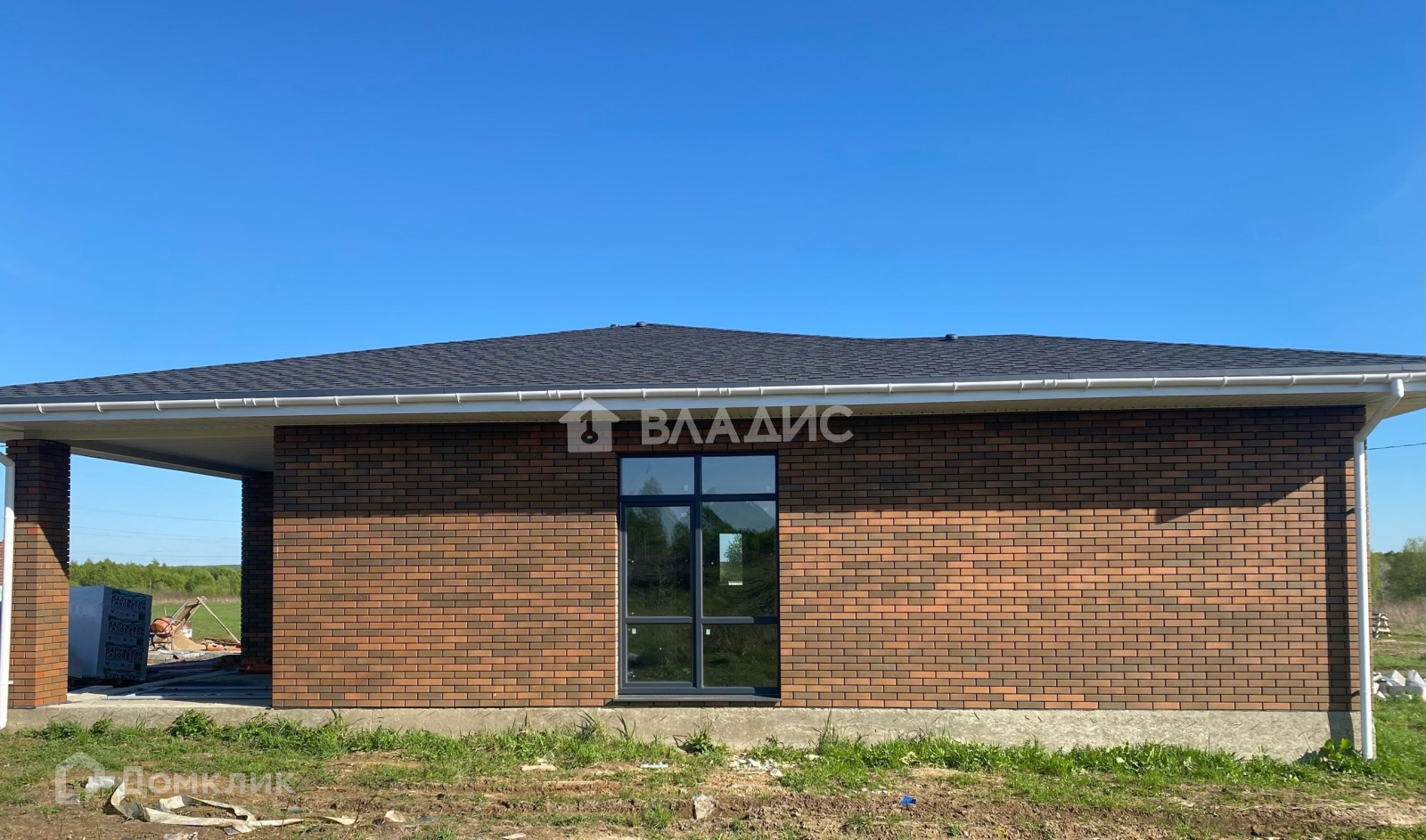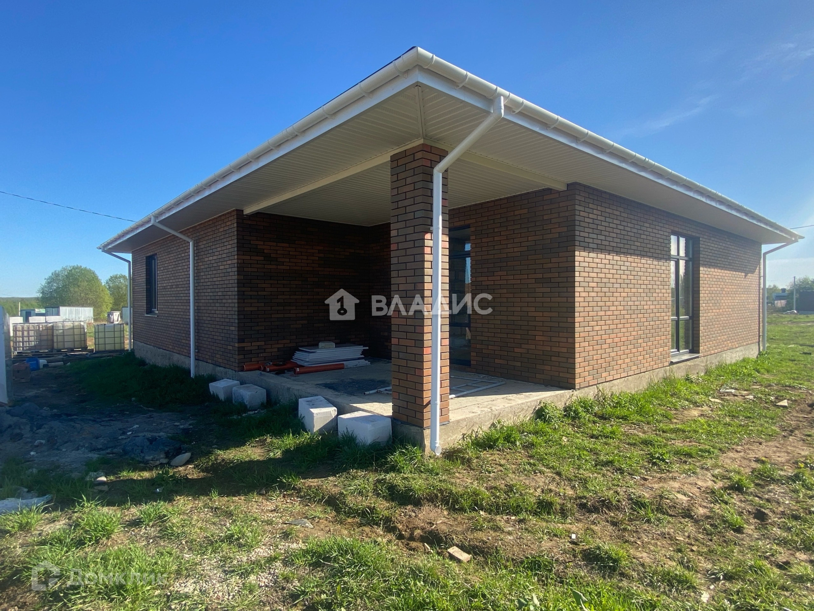Дом из газобетонного блока, фасад отделан качественным кирпичом БРАЕР, крыша из металлочерепицы ГРАНДЛАЙН, окна стеклопакеты REHAU.