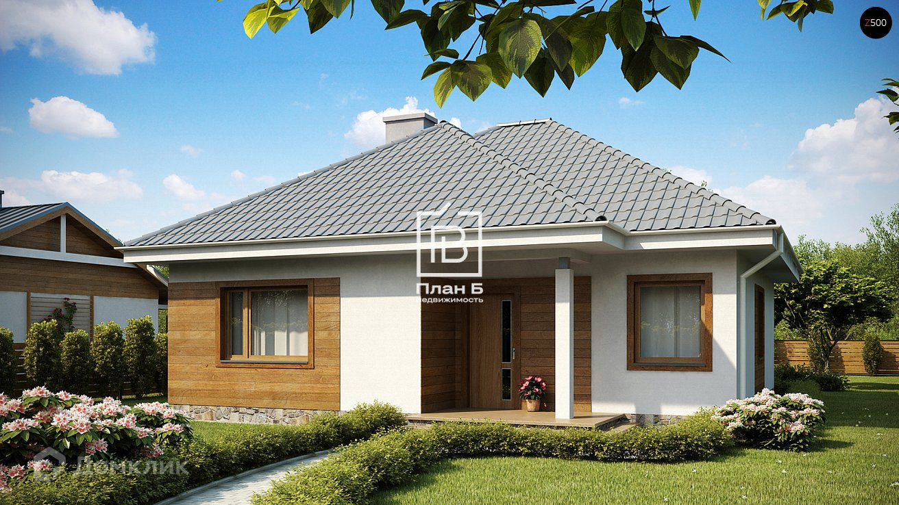 Площадь дома 74 метра. В планировке предусмотрена большая кухня-гостиная, три изолированные спальни, совмещённый санузел.