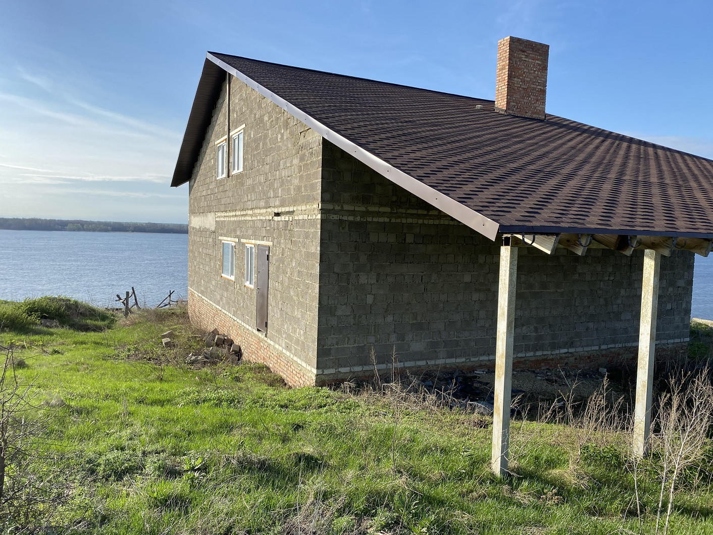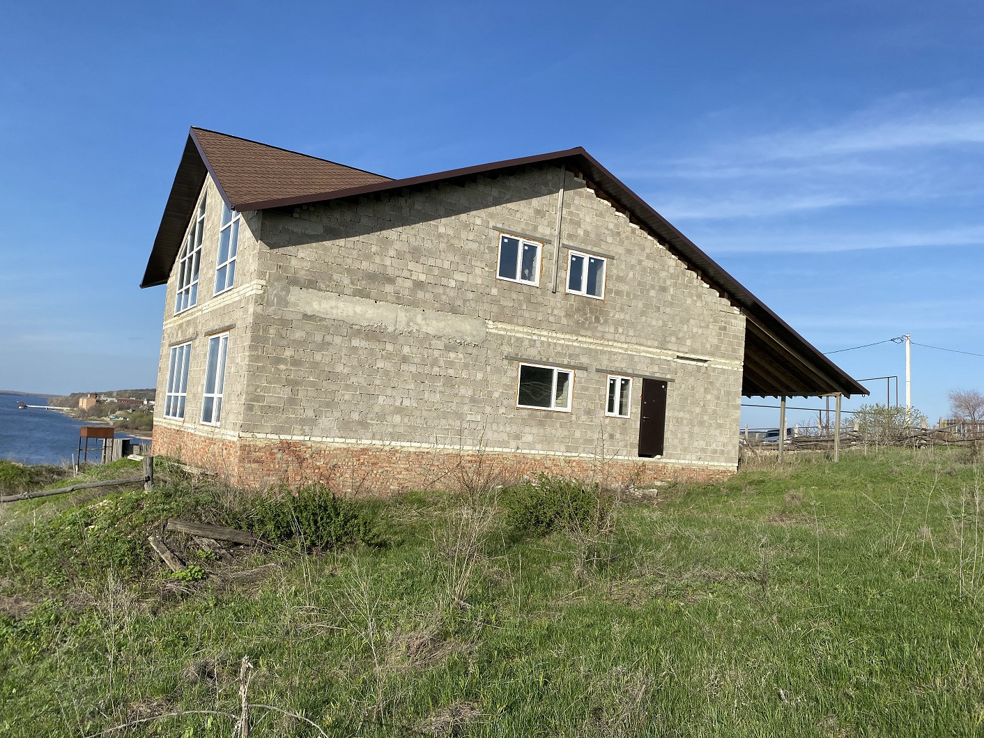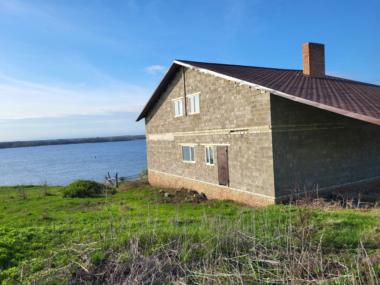 Дом расположен в живописном местечке на берегу реки Волги. Возведена капитальная 2-х этажная коробка из пеноблоков с черепичной крышей, входной дверью и пластиковыми окнами. На фото можно увидеть веранду и панорамные окна на 1 и 2ом этажах. Участок 951 кв м в собственности, все коммуникации оформлены, слив - яма. В доме нужно выполнить наружнюю и внутреннюю отделку. На выходе вы получите дом на 1ой линии от Волги.