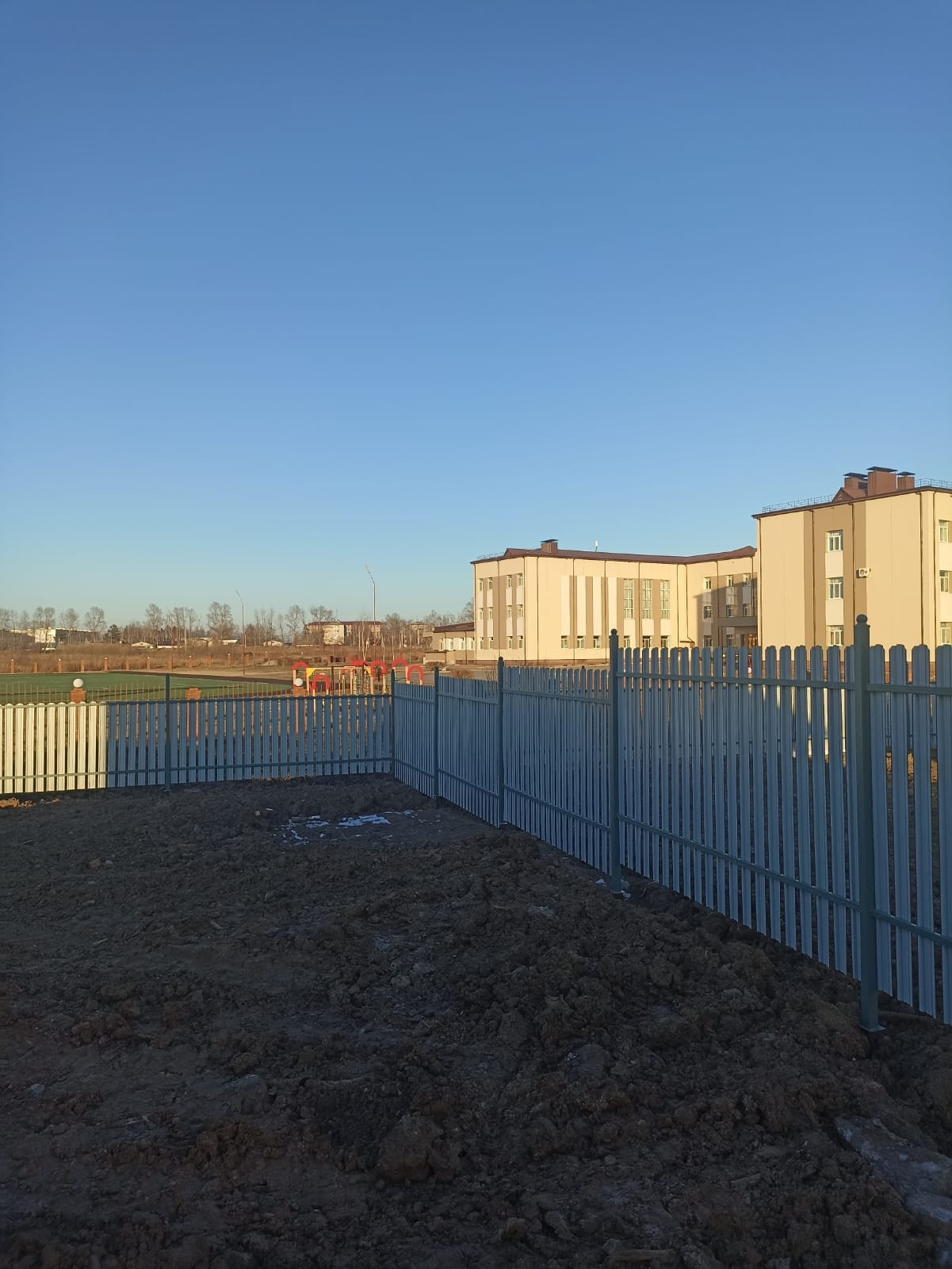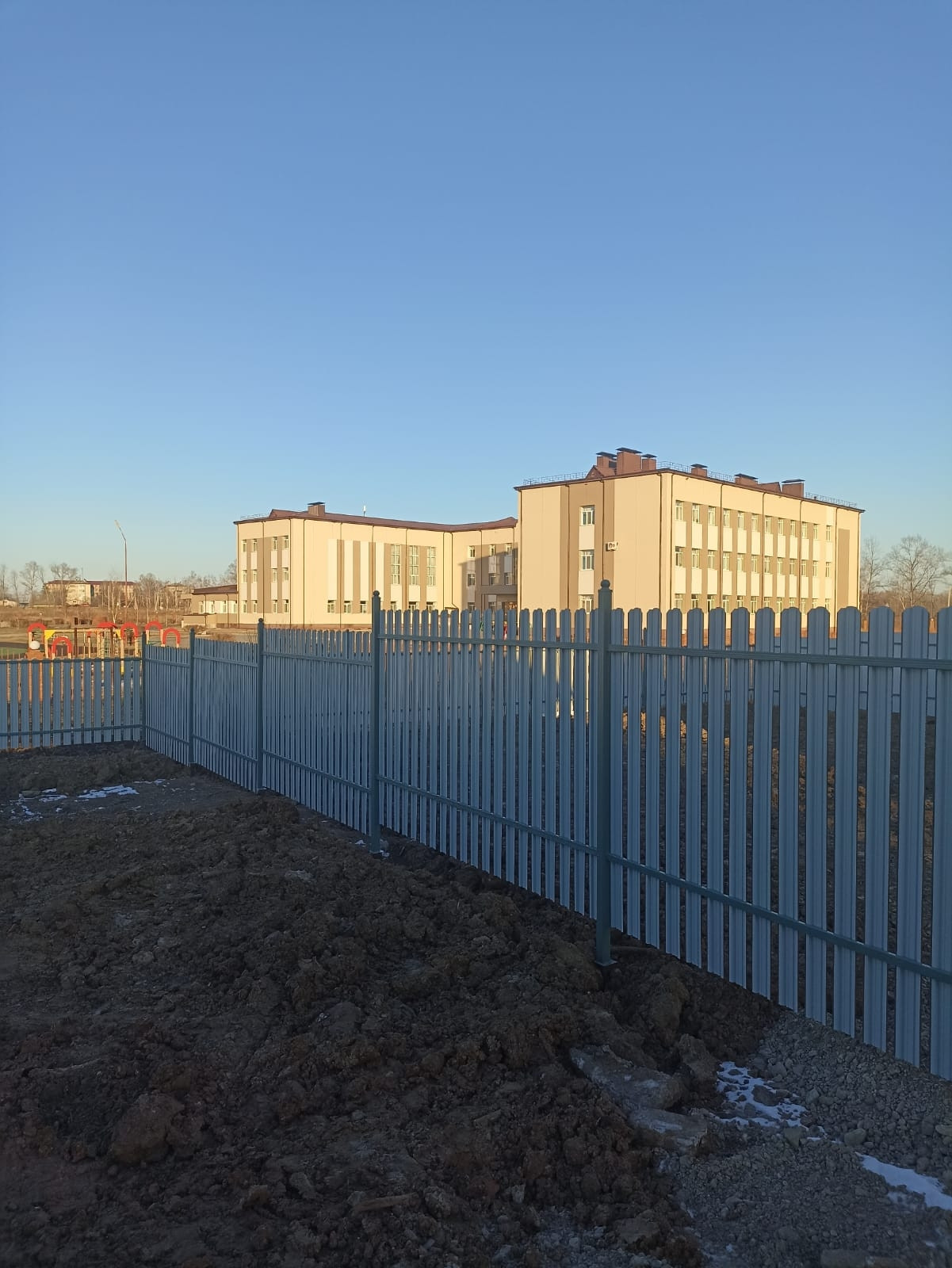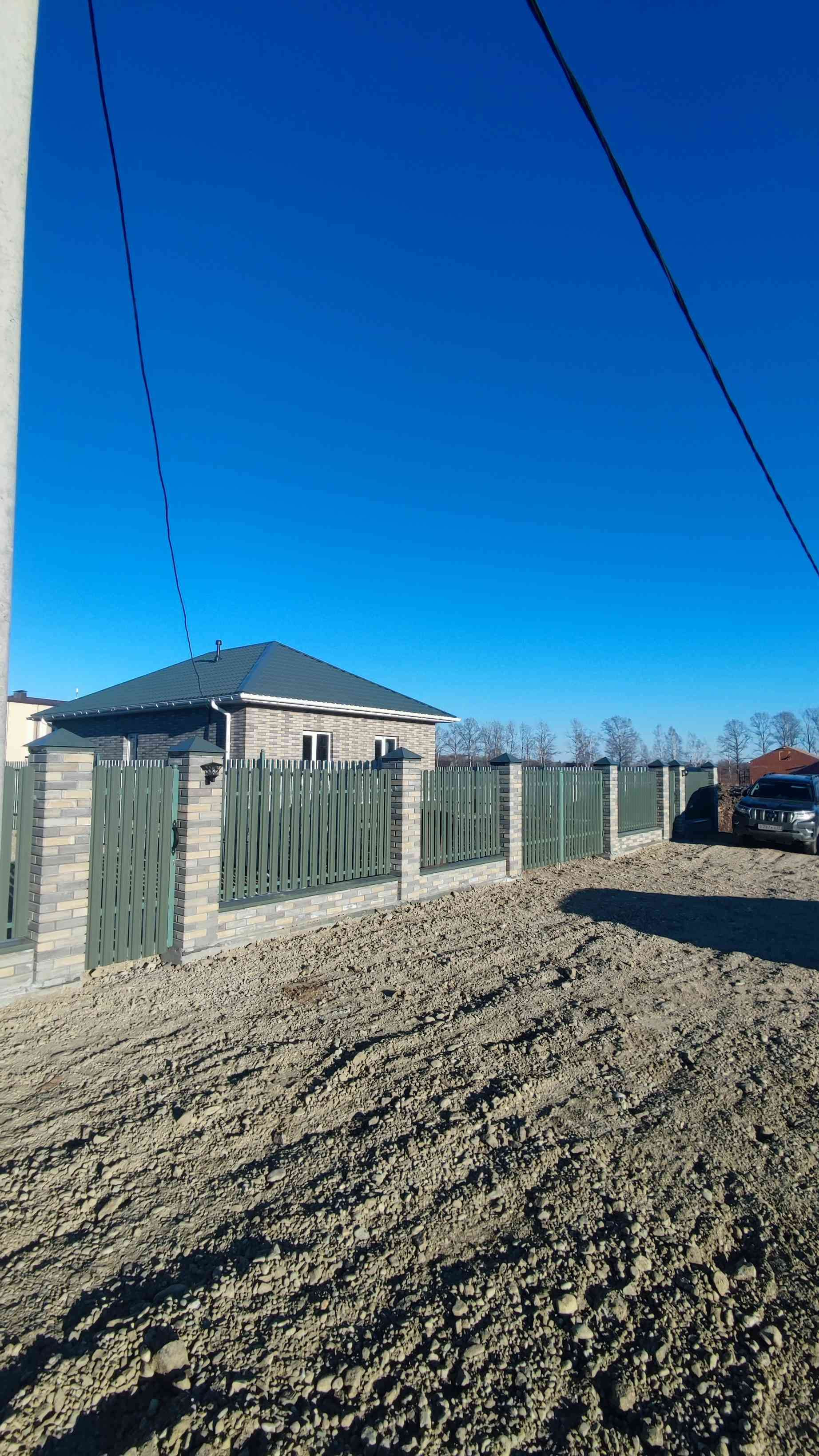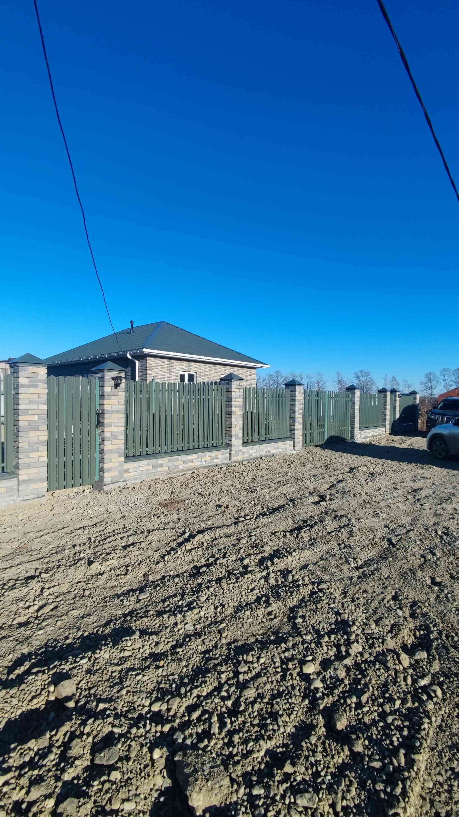 Аккуратный, современный забор с калиткой и воротами.