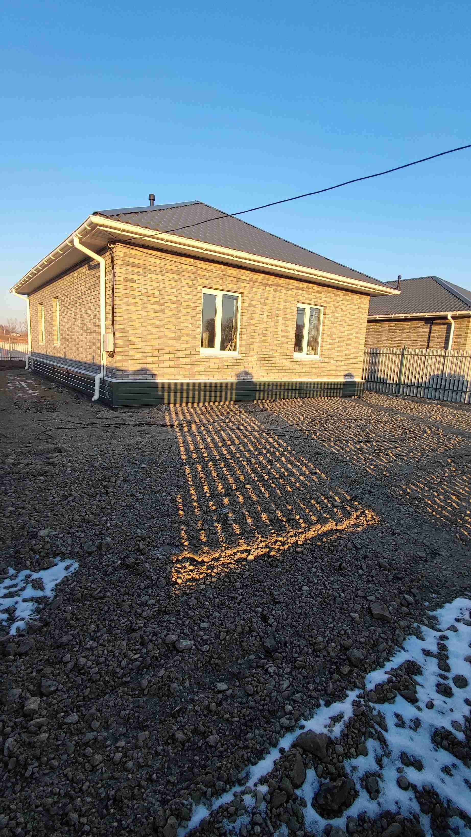 Тёплый контур дома: утепление пол/стены/потолок (120/150/200), отделка фасада выполнена облицовочным кирпичом. Дом очень тёплый и экономичный в содержании.