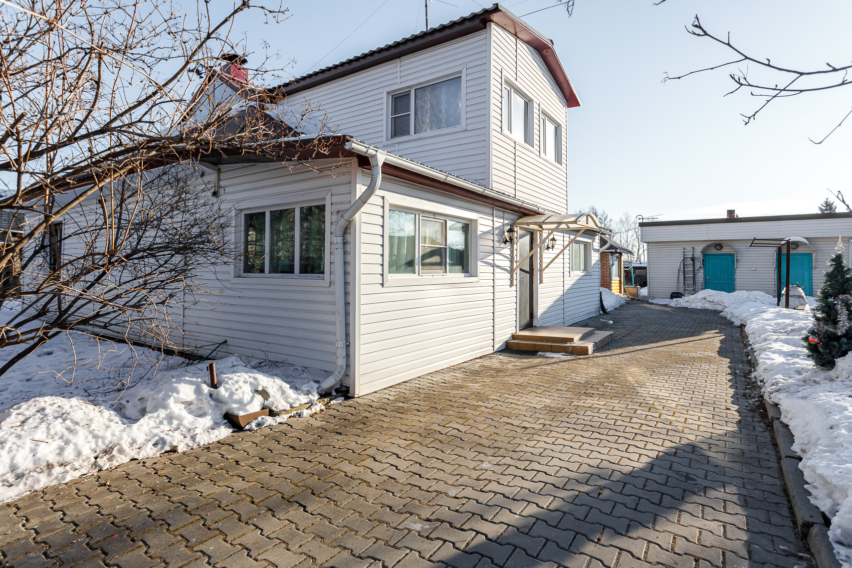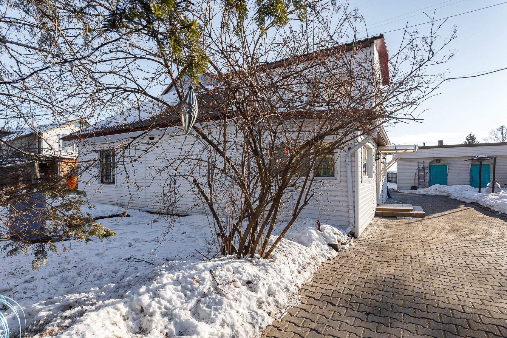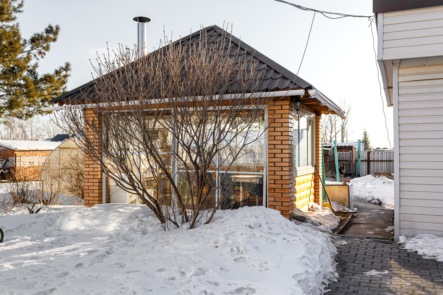 *Двор выложен брусчаткой. Земельный участок 12 соток в собственности с садом и огородом, имеются плодово - ягодные сортовые насаждения, теплица из поликарбоната, банька, сарай. Участок огорожен забором с воротами для въезда автотранспорта.
