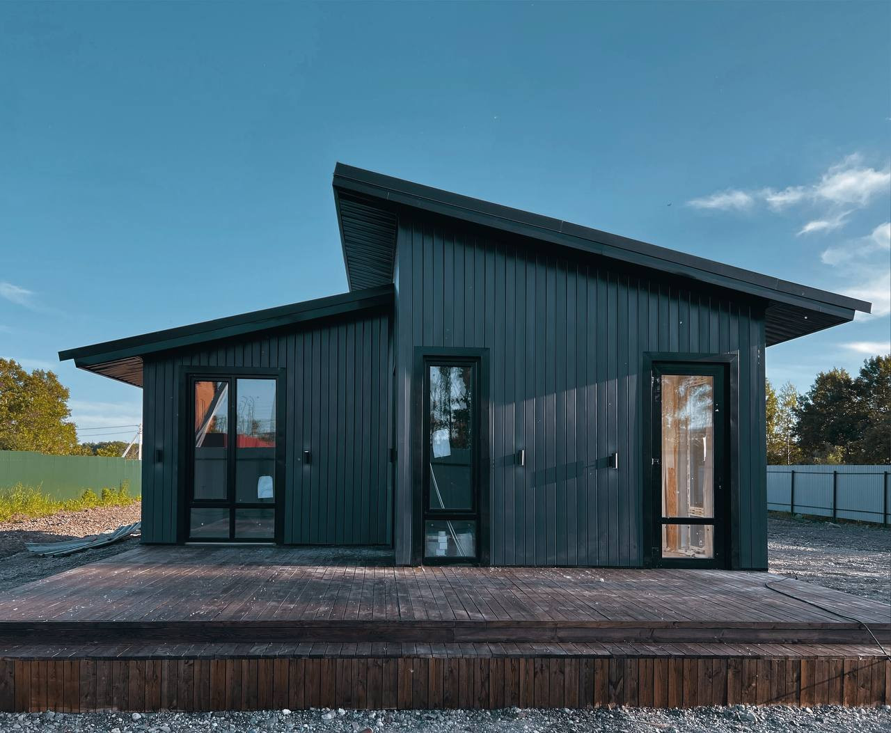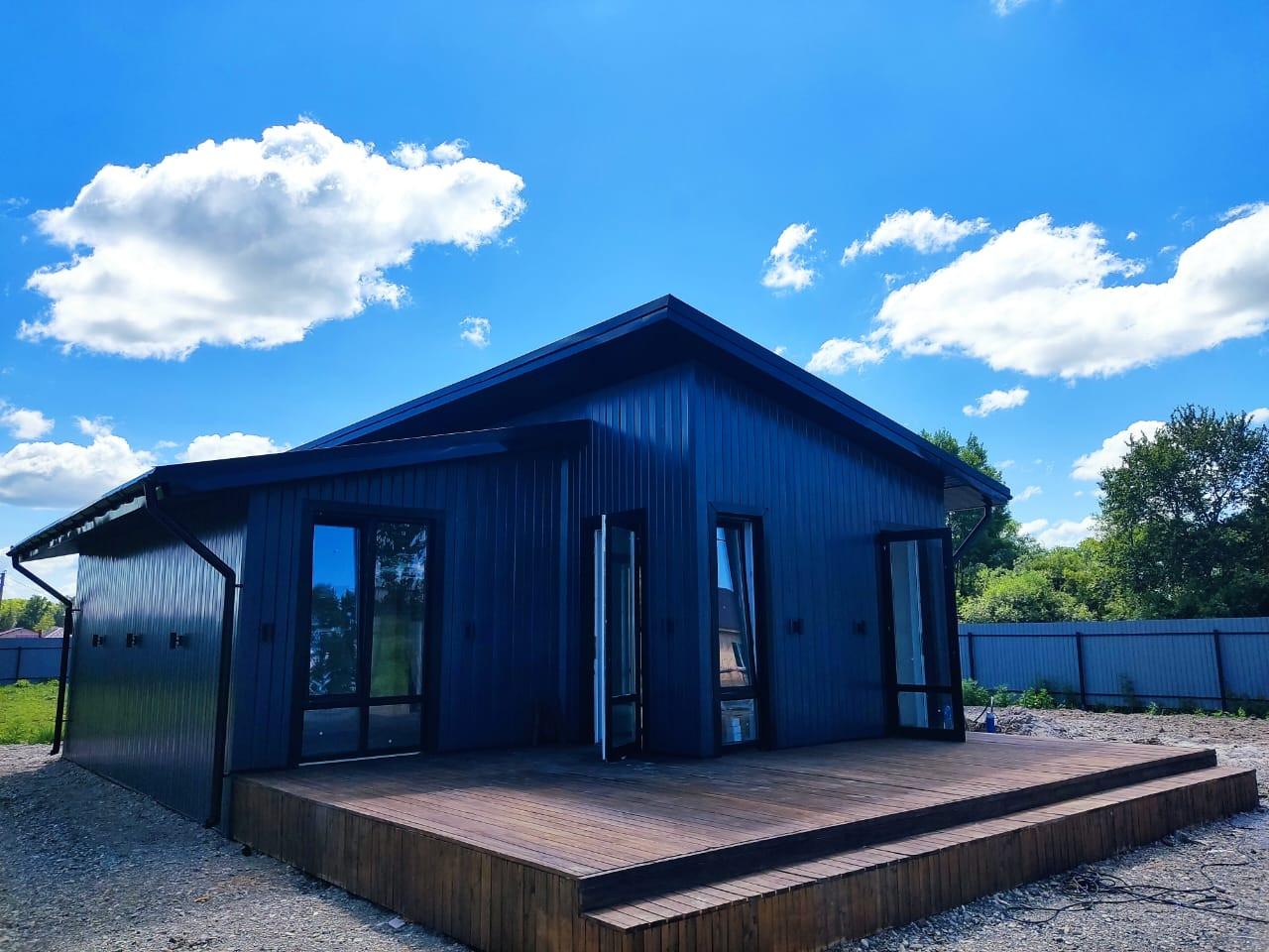 В доме две отдельные комнаты, большой сан. узел и кухня-гостиная.