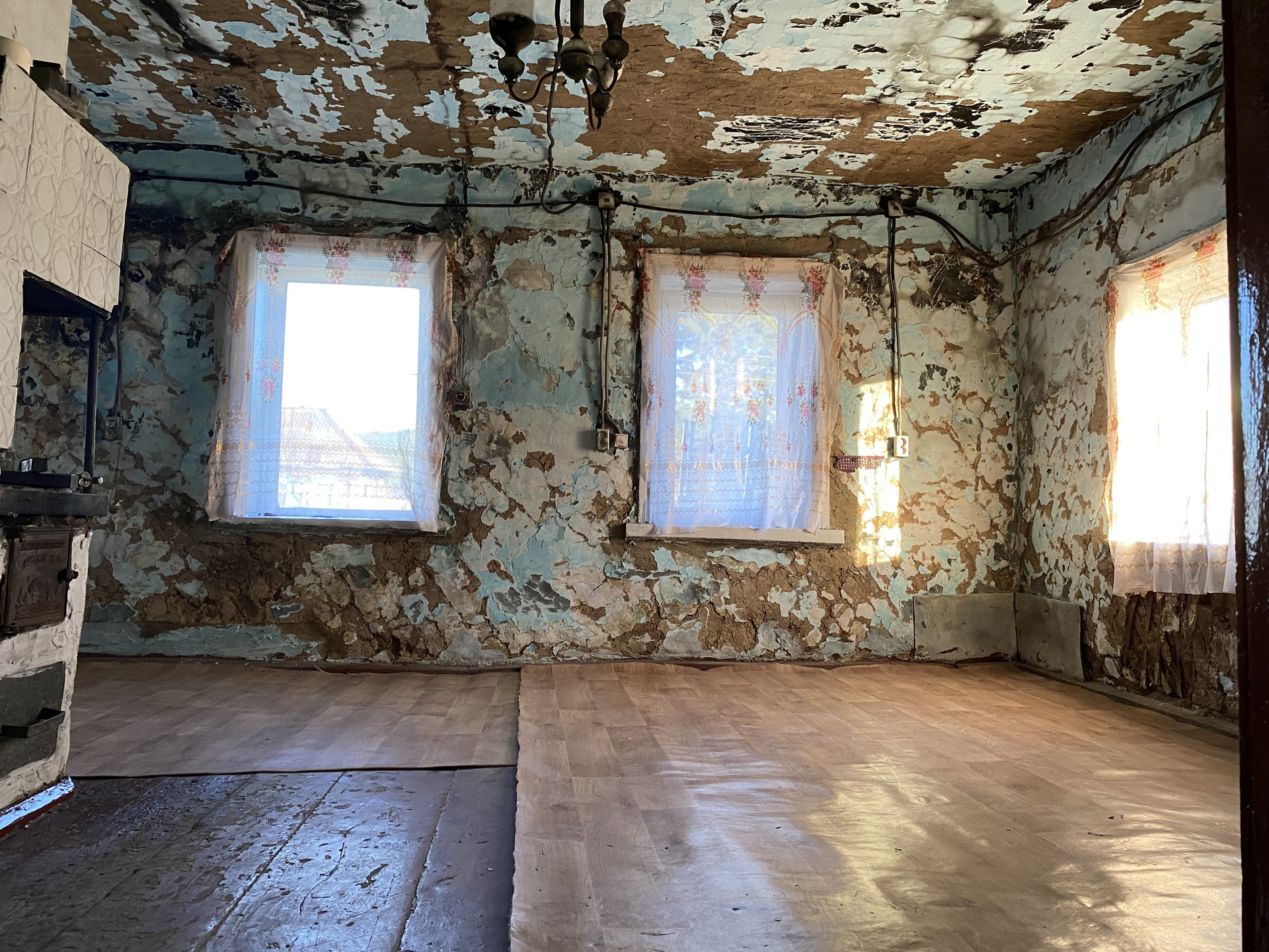 В доме произошел пожар (загорелся холодильник), дом пострадал только изнутри, требуется отделка стен.