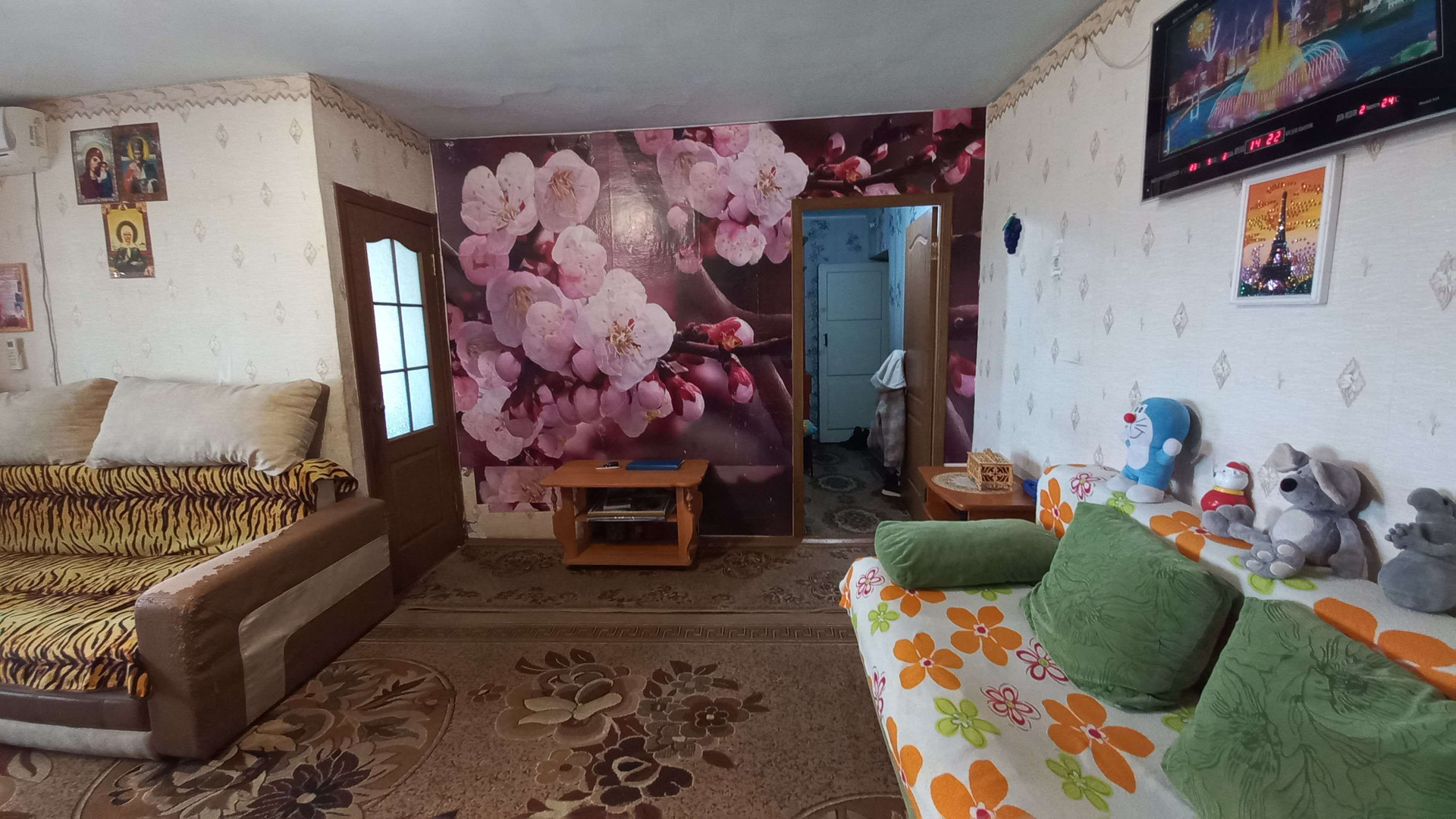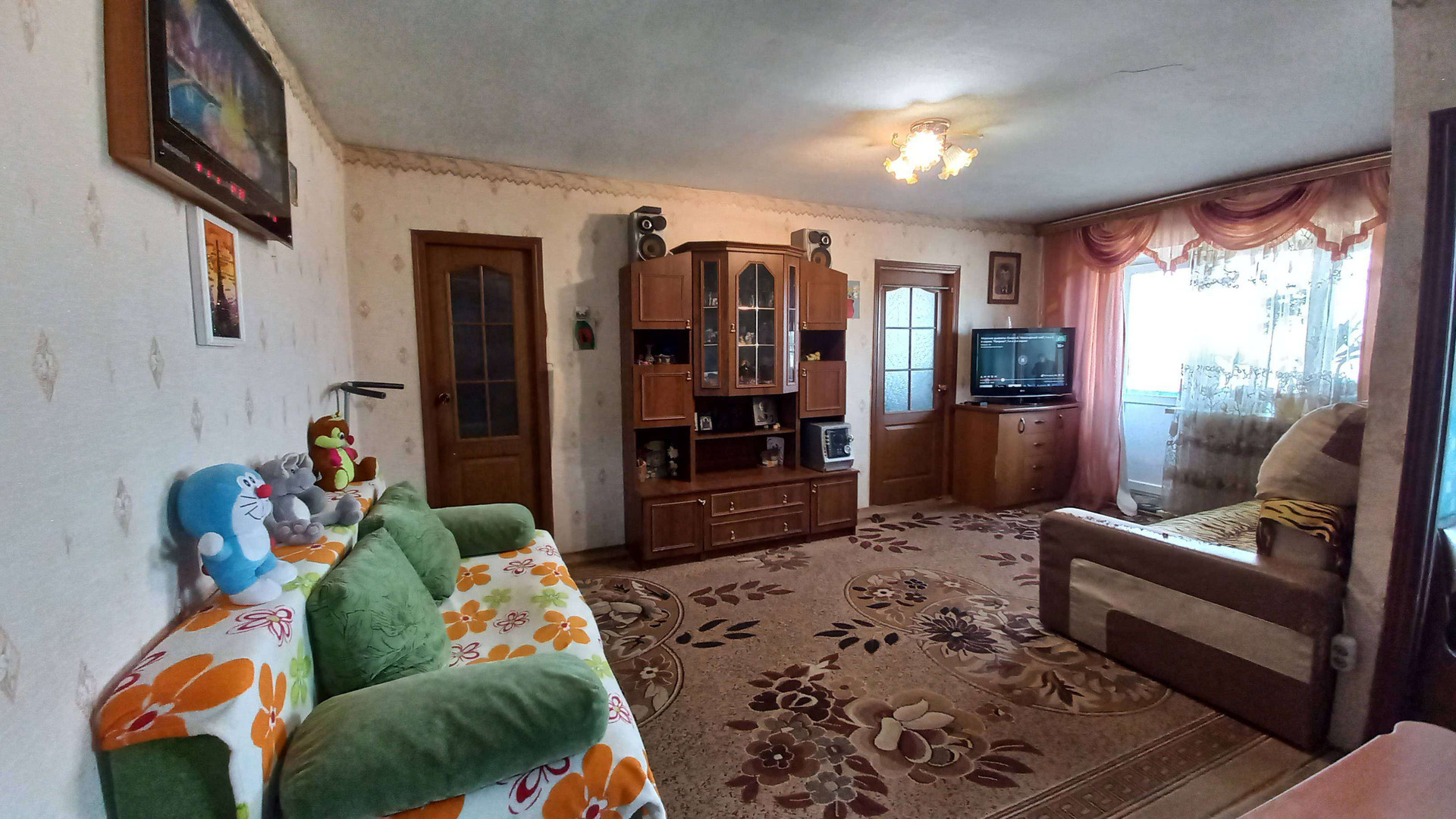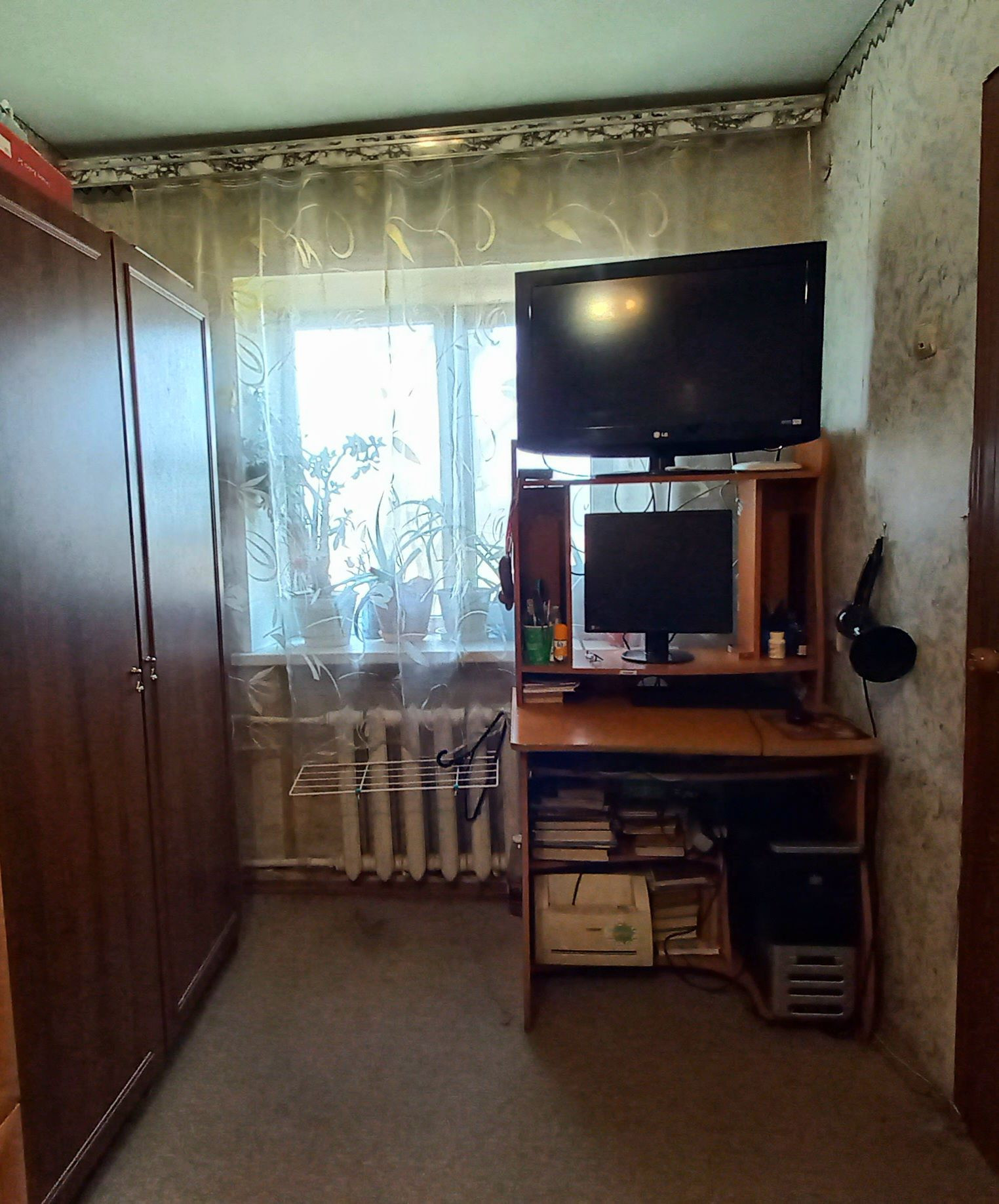 Состояние квартиры жилое: установлены пластиковые окна (кроме кухни), на стенах обои, потолок окрашен, на полу оргалит+ковровое покрытие, ванная комната (ПВХ-панель), межкомнатные двери, титан, по всей квартире полностью заменена электропроводка, система водоснабжения и канализации, частично заменена система отопления (радиаторы биметалл).