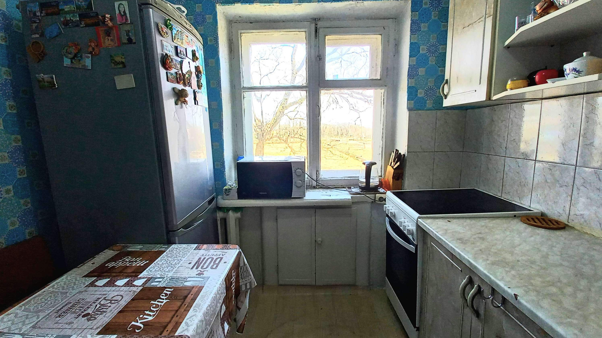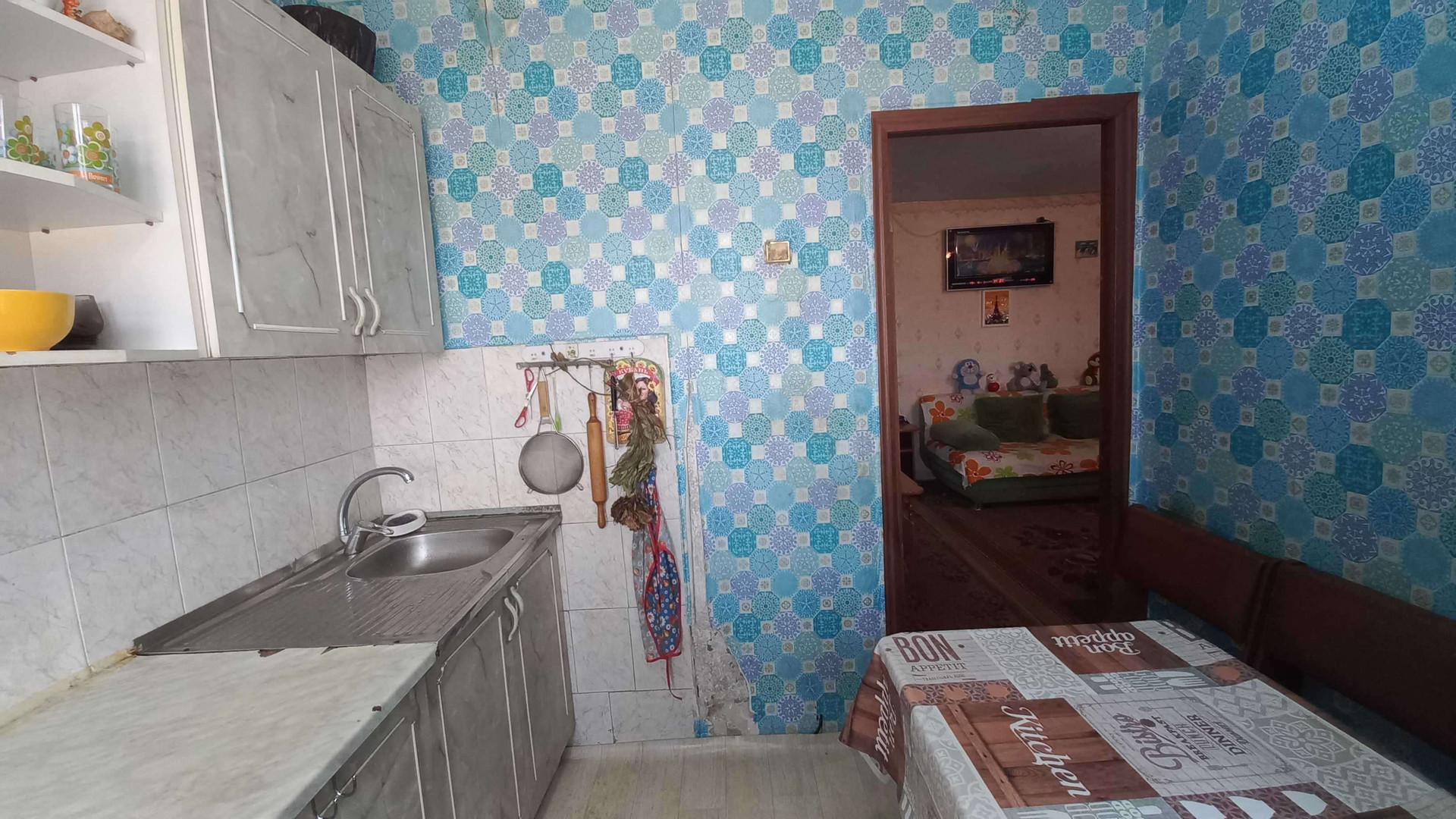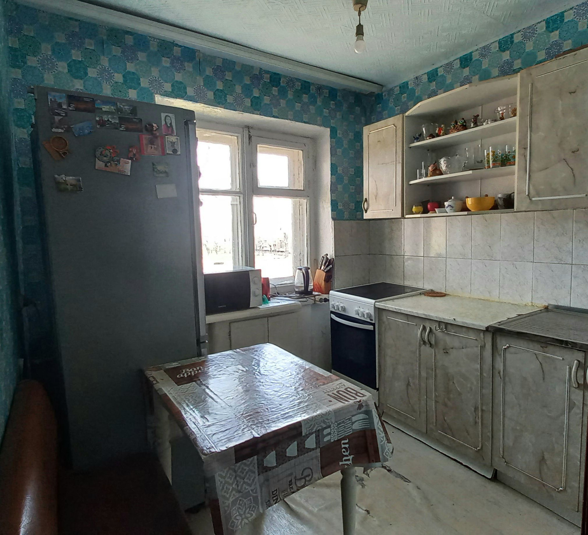 Состояние квартиры жилое: установлены пластиковые окна (кроме кухни), на стенах обои, потолок окрашен, на полу оргалит+ковровое покрытие, ванная комната (ПВХ-панель), межкомнатные двери, титан, по всей квартире полностью заменена электропроводка, система водоснабжения и канализации, частично заменена система отопления (радиаторы биметалл).