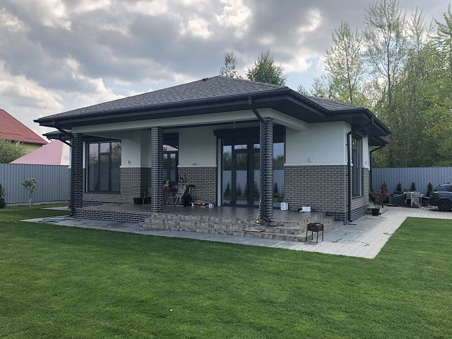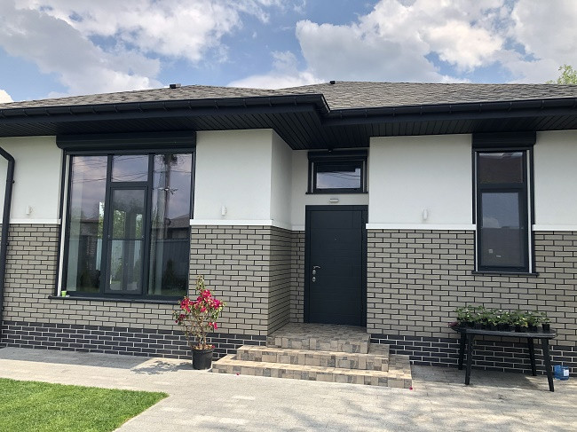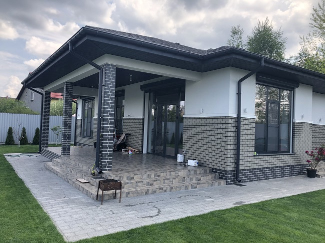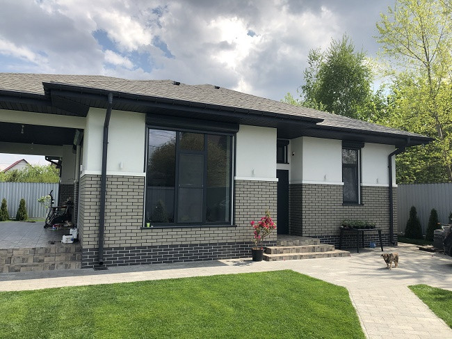 Фaсад – Утeплитeль 50 мм + штукатурка профессиональная "Церезит" Короед в сочетании с облицовочным кирпичом