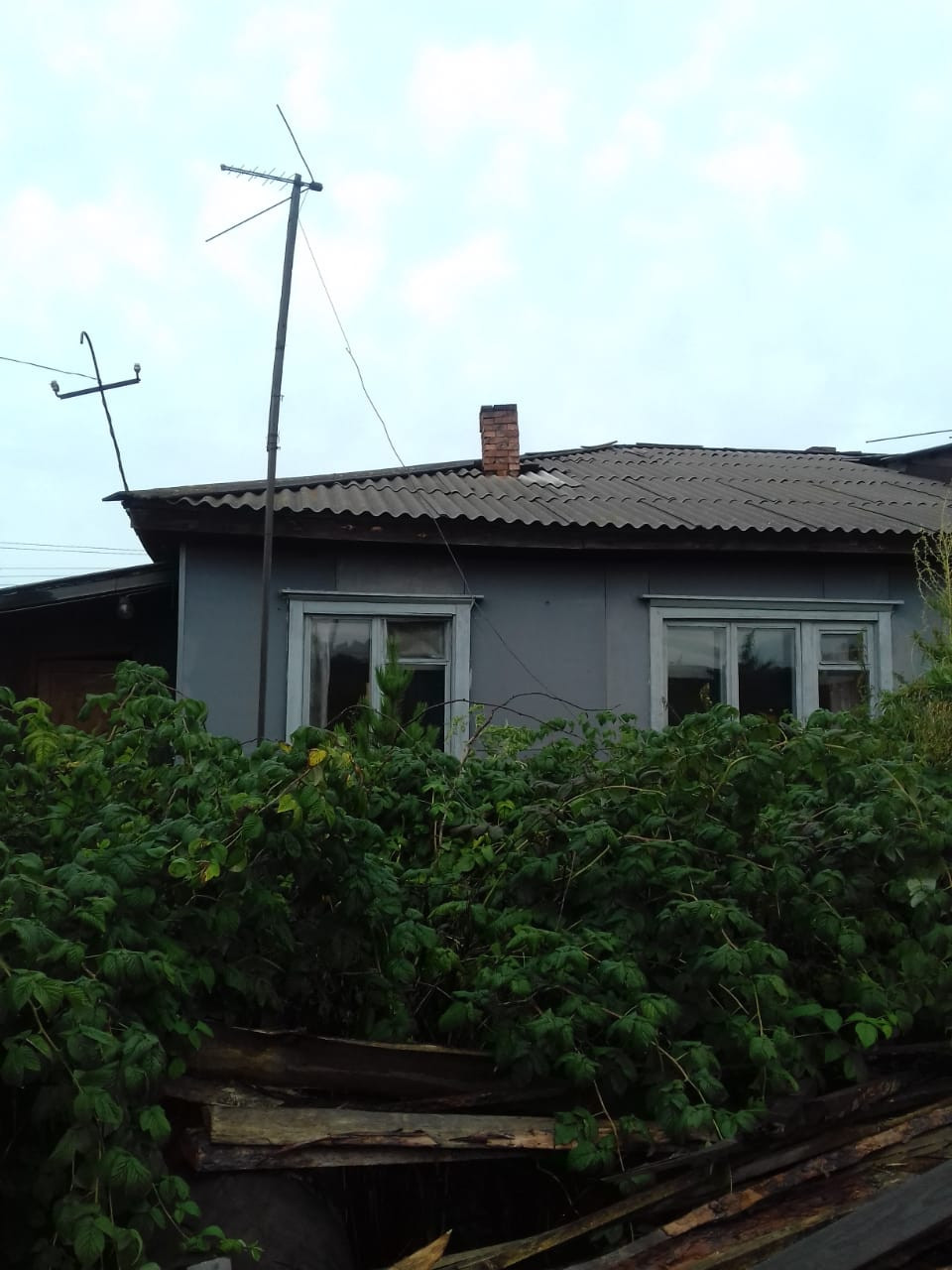 Дом стоит в удобном месте в стороне от трассы. Площадь дома 44.5 кв. Есть две комнаты и кухня, вода-колонка, есть септик, но в дом не заведен. Придомовой земельный участок  9 соток и гараж. Всё растет. Есть небольшой долг по приставам . Решаемо. Два взрослых собственника. Цена дома и участка 3100 т.р.
