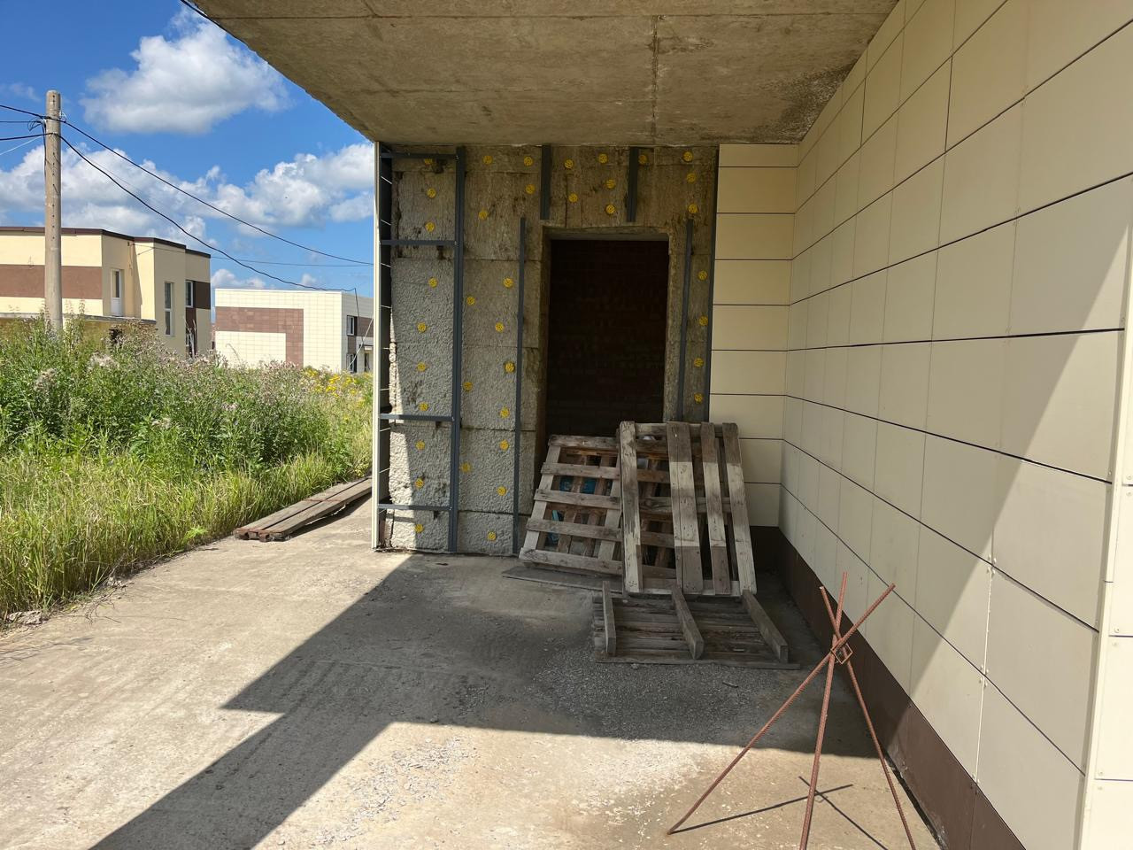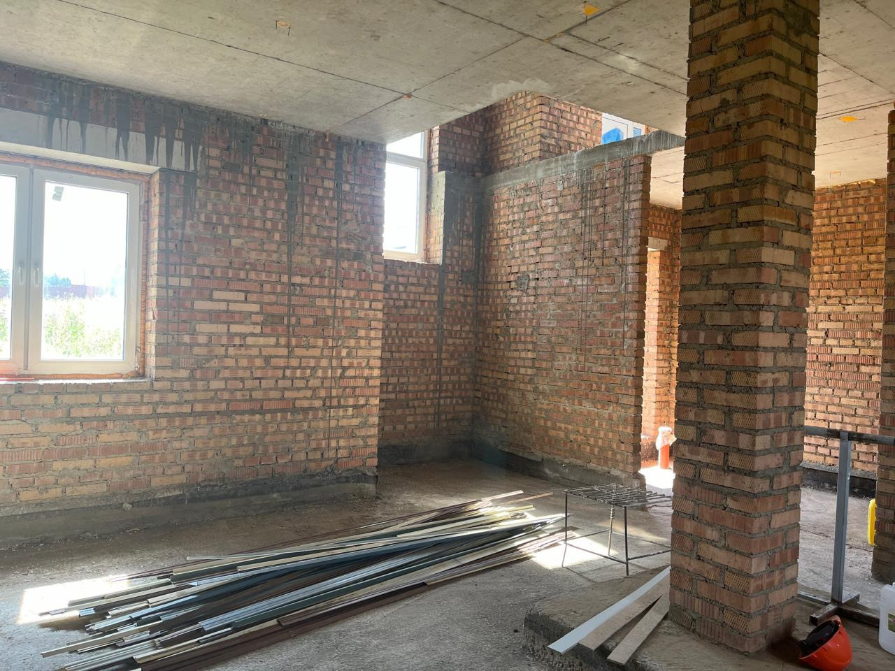 Потолки в черновом виде 3,20м. Два панорамных окна с выходом на предполагаемую террасу.