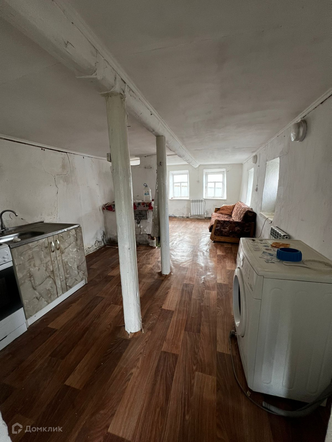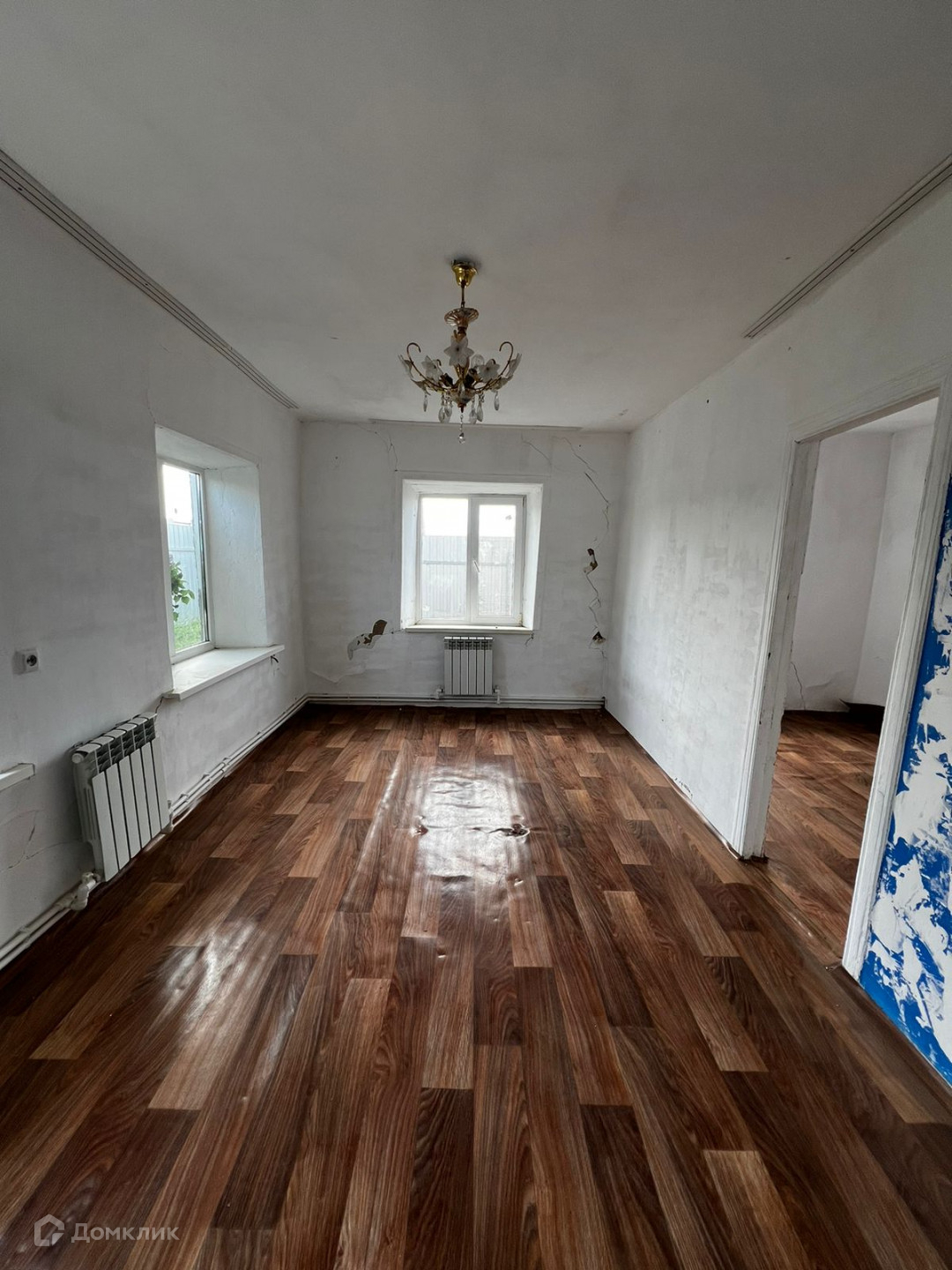 По всему дому линолеум, установлены пластиковые окна