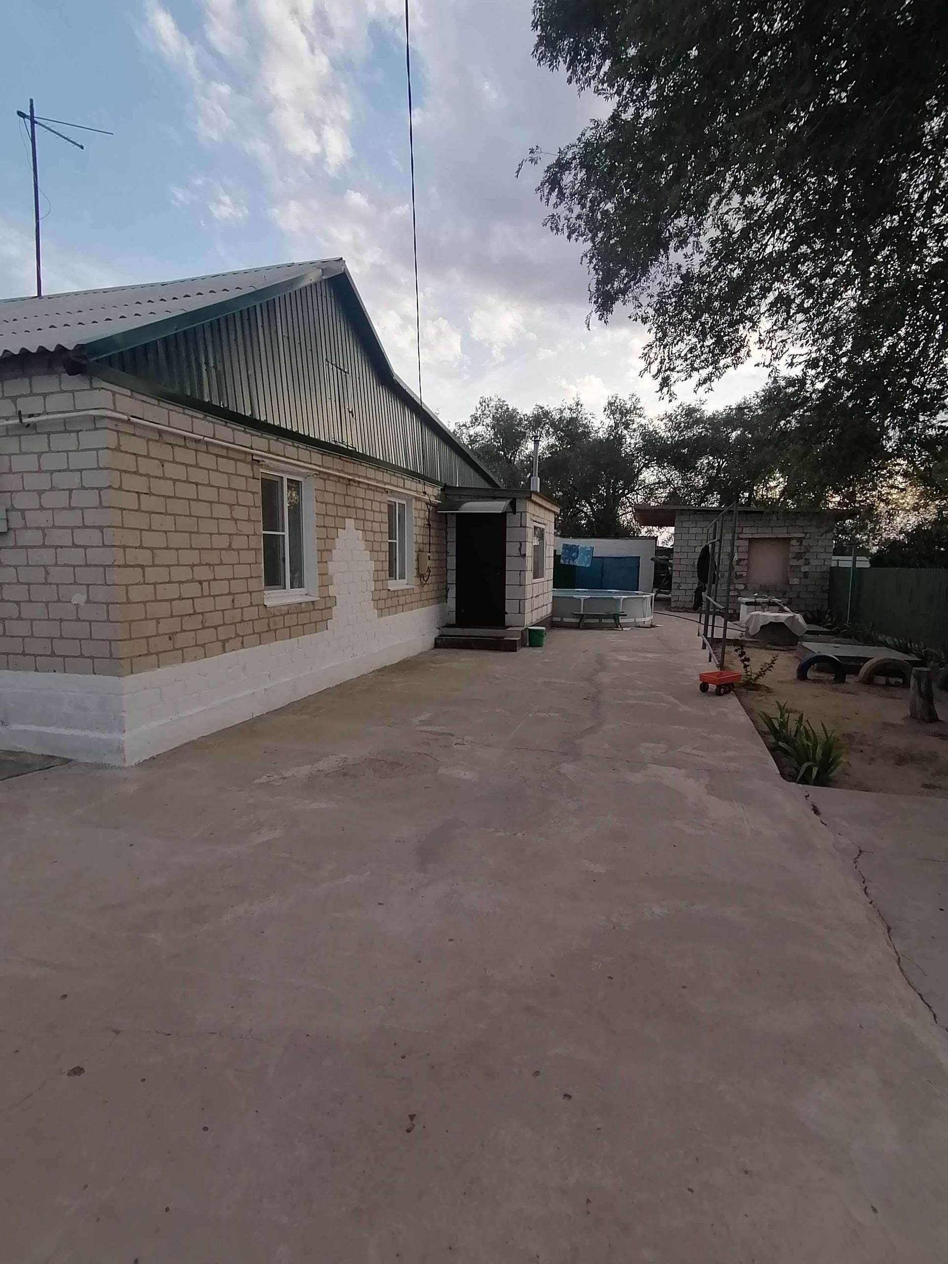 Во дворе недостроена большая зимняя кухня, есть гараж с ямой, баня с отдельной парилкой,большая кладовка, два бассейна для воды. Двор залит бетоном, на заднем дворе тоже аккуратно сделаны дорожки и площадки из бетона. Хозпостройки новые, свинарники на фундаменте, из нового силикатного кирпича, вмещают большое количество свиней, в других сараях можно держать птиц, КРС и МРС. Двор вкруговую обнесен метоллопрофильным забором. Удобный выход в степь для скота. По селу ведут водопровод. Рассмотрим наличку и ипотеку. Торг возможен.