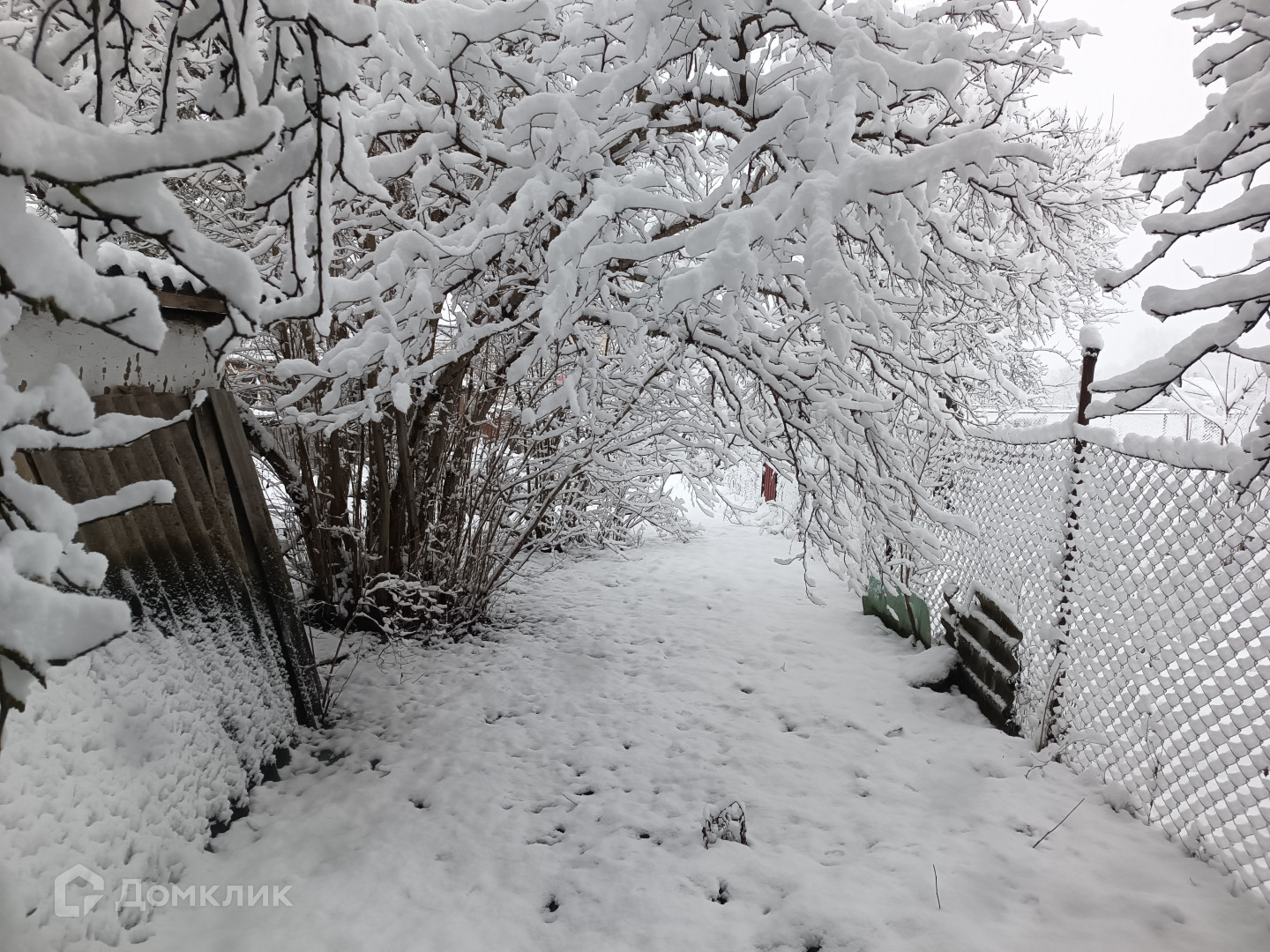 Огород прямоугольной формы, ровный. Отгорожен от основного двора металлическим забором.