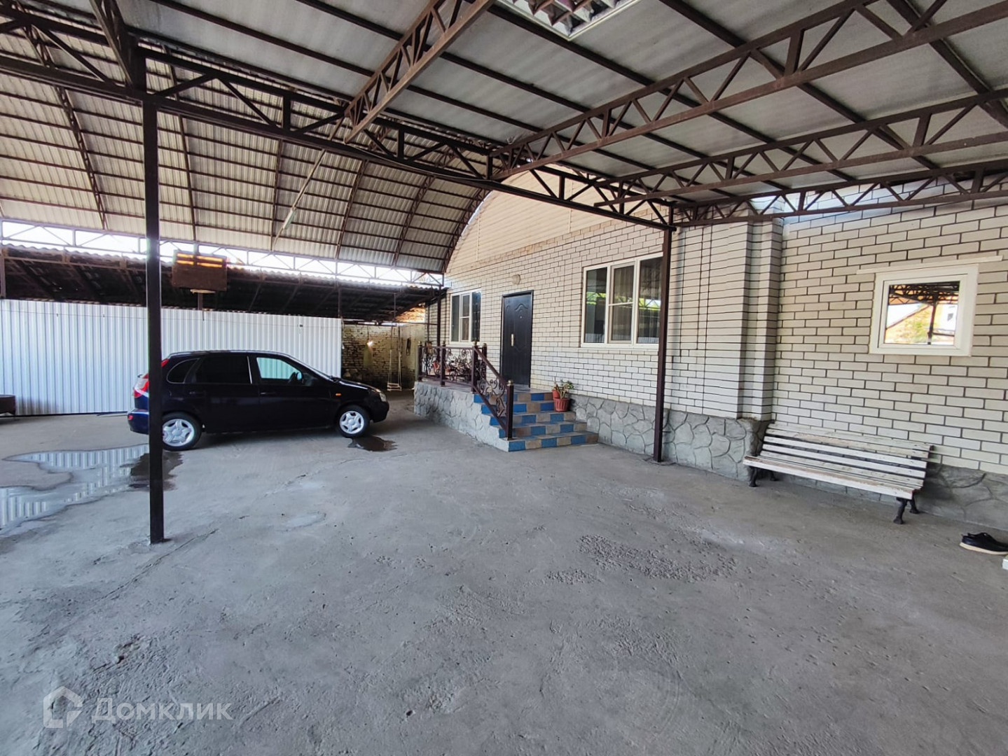 Два входа в дом, во дворе огромный навес, есть гараж с помещением для покраски автомобилей (оборудованные для малярно-кузовных работ), хозяйственные постройки.