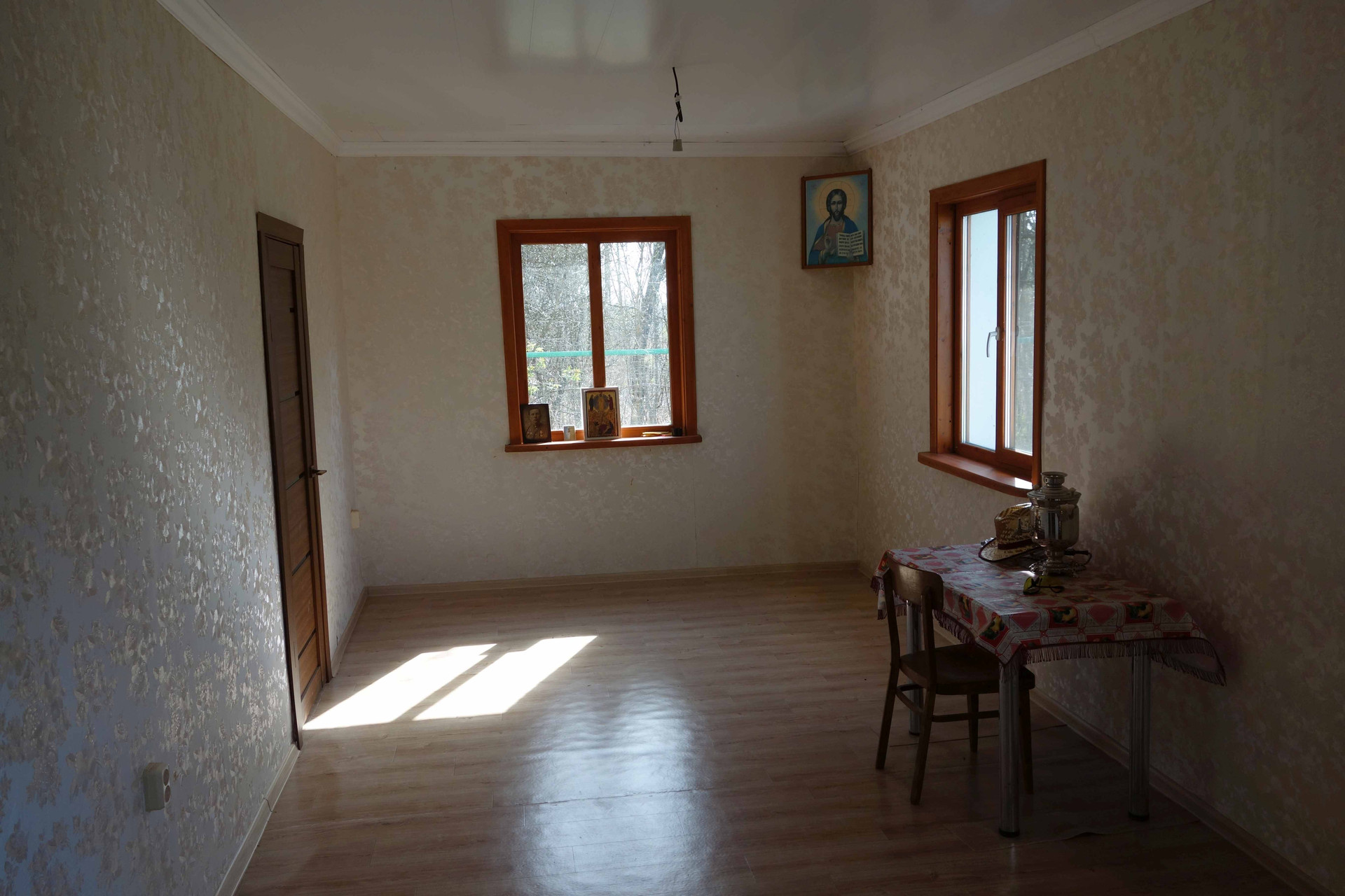 Дом 82.5 м2, жилая площадь 55.9 м2 (печное отопление,электричество,вода),сделан ремонт, участок17 сот., имеются плодовые насаждения и ягодные кустарники. На участке расположена деревянная часовня  (на фронтоне икона из стеклянной и золотой смальты), просторная беседка.