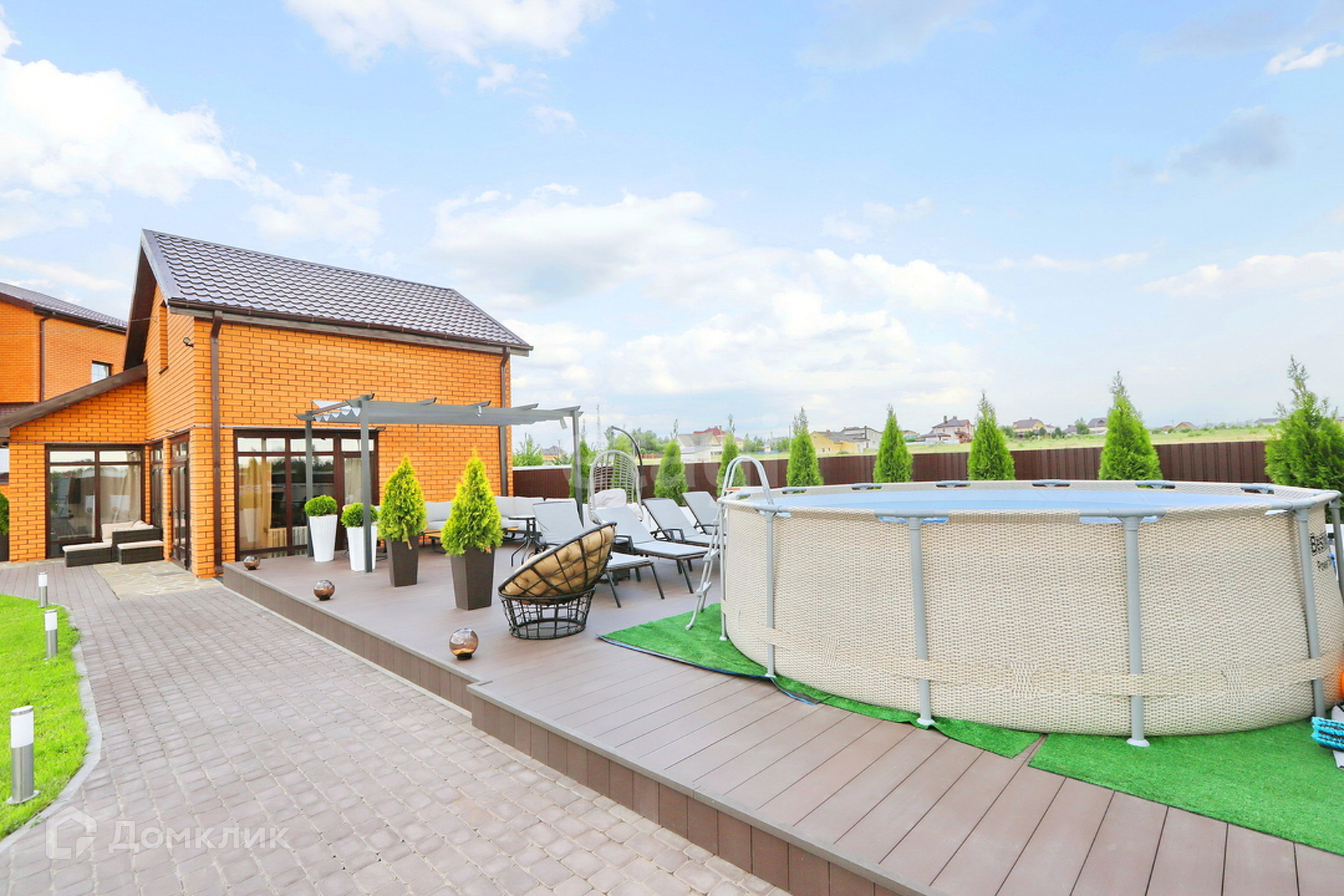 Современный принцип организации пространства: дом разделен на две зоны (взрослая и детская),гостевой дом, лаундж зона.