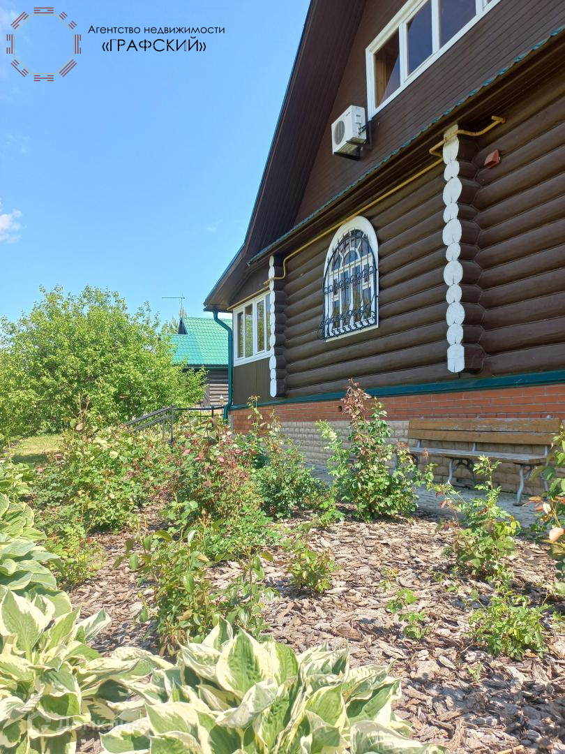 Крепкий двухэтажный дом на большом участке земли(21 сотка) строили для себя.Продумано все до мелочей для счастливой жизни. По периметру высажены красивейшие ели, на участке есть березы, груша,яблони , другие плодовые деревья. Роскошный розарий перед домом придает ему особое очарование. Тропинки выложены камнем, есть беседка, баня и кирпичный сарай.