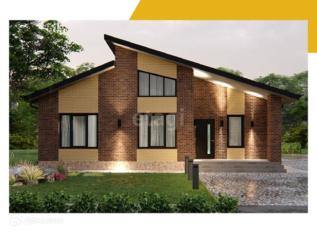 На фото проект кирпичного дома 107 м2 , который вы можете заказать у нашего партнера - надежной строительной компании.