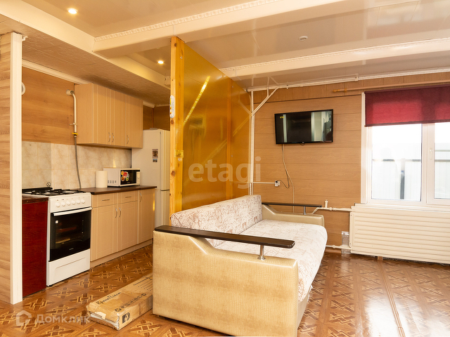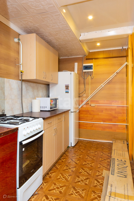 В доме остаётся кухонный гарнитур, газовая плита, шкаф, стол, два кресла.
