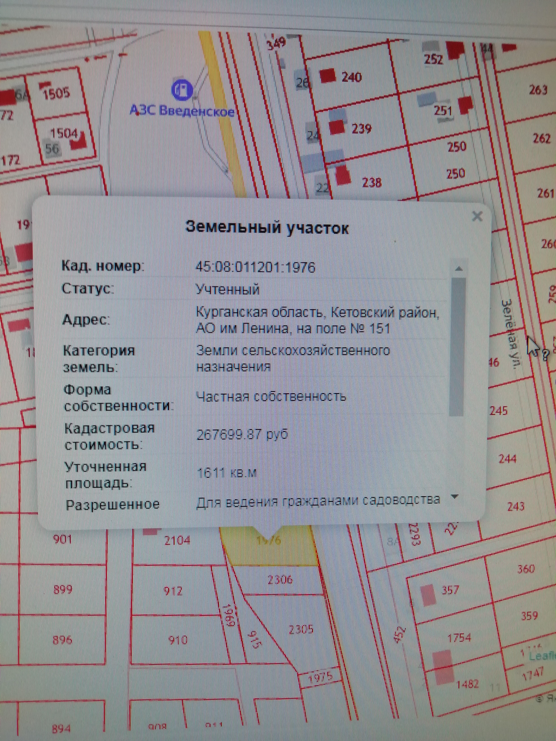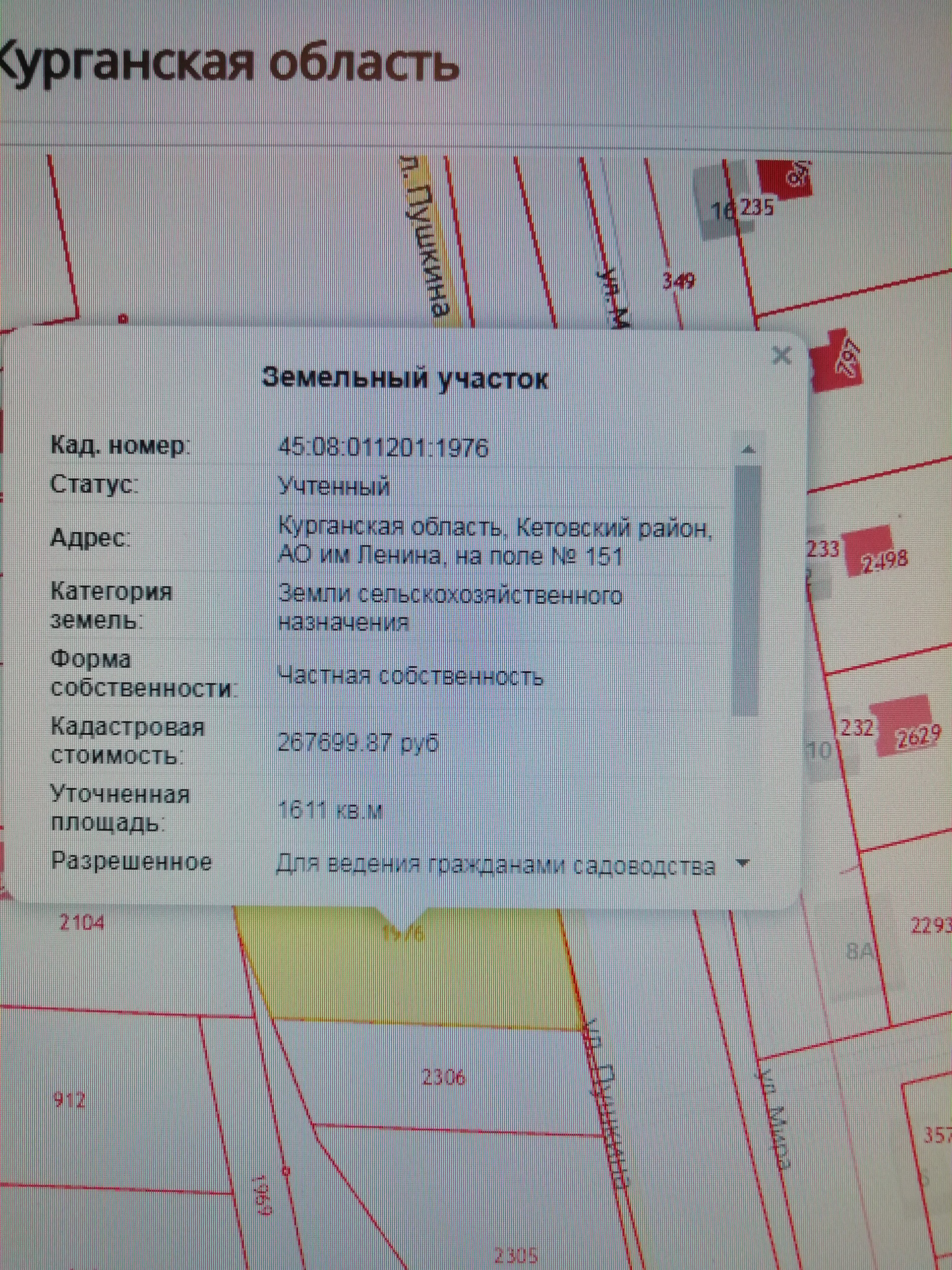 Кадастровый номер 45:08:011201:1976