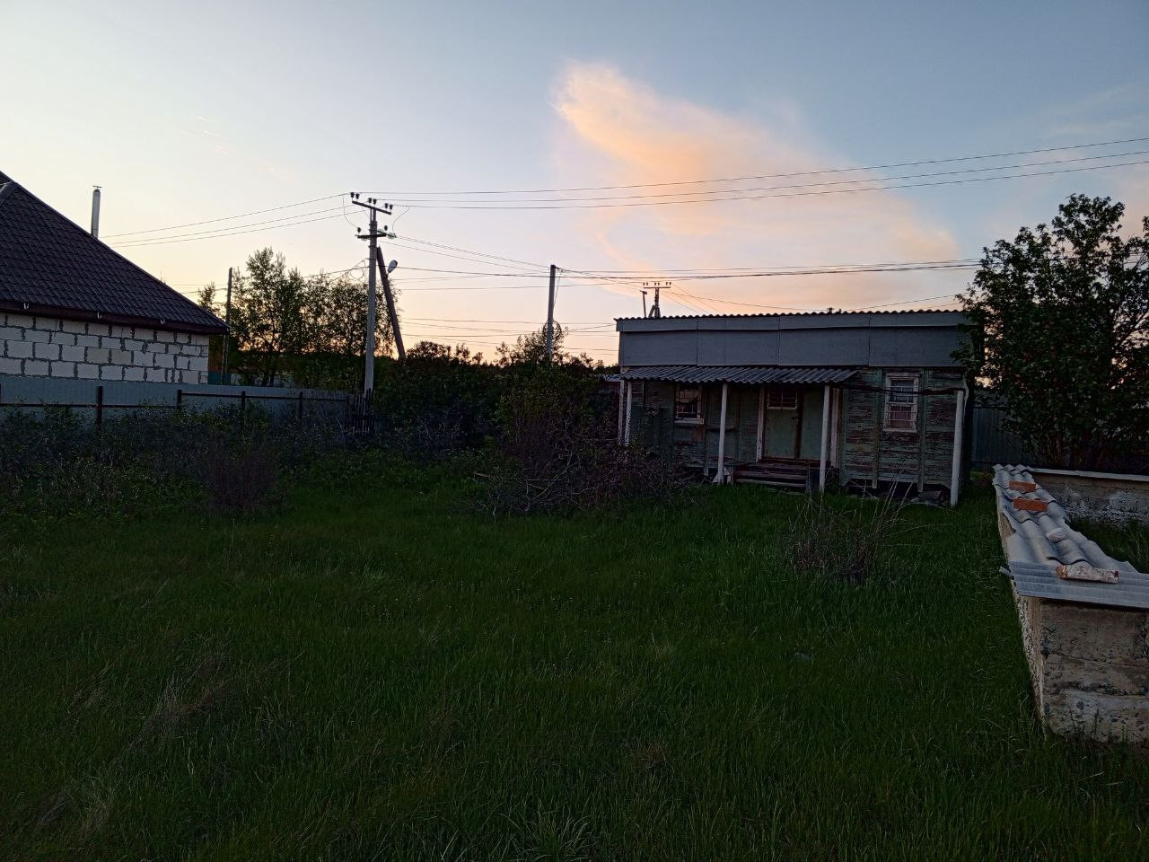 Участок, на участке, жилой вагончик, газовая труба на участке, фундамент 10 на 10, высота 1.50 метра под большой двух этажный дом ленточний, колодец,сад, земля разботана, остановка, магазин рядом, не далеко стоянка, автосервис, кафе, заправка, большая площадь от забора до дороги.