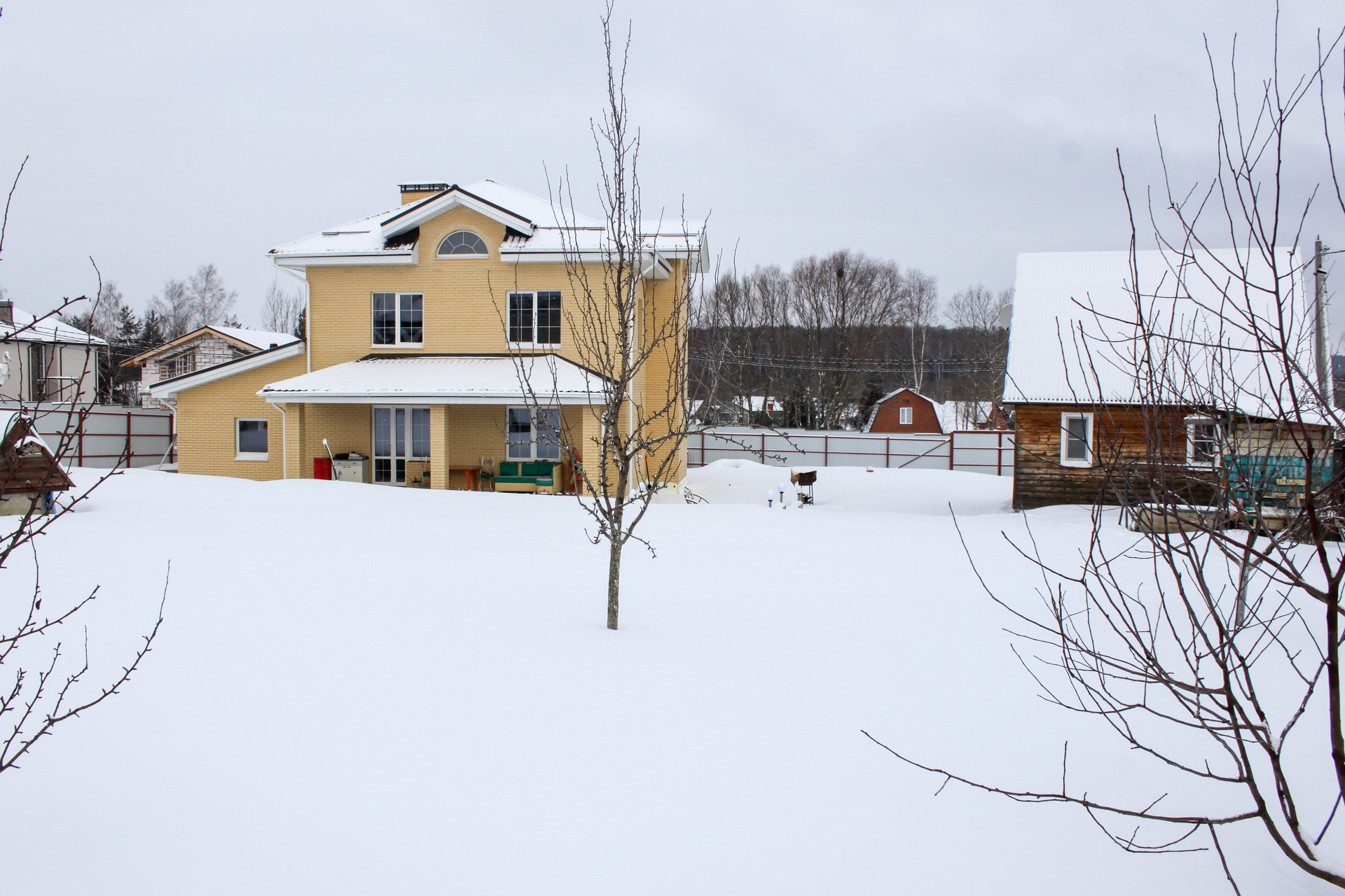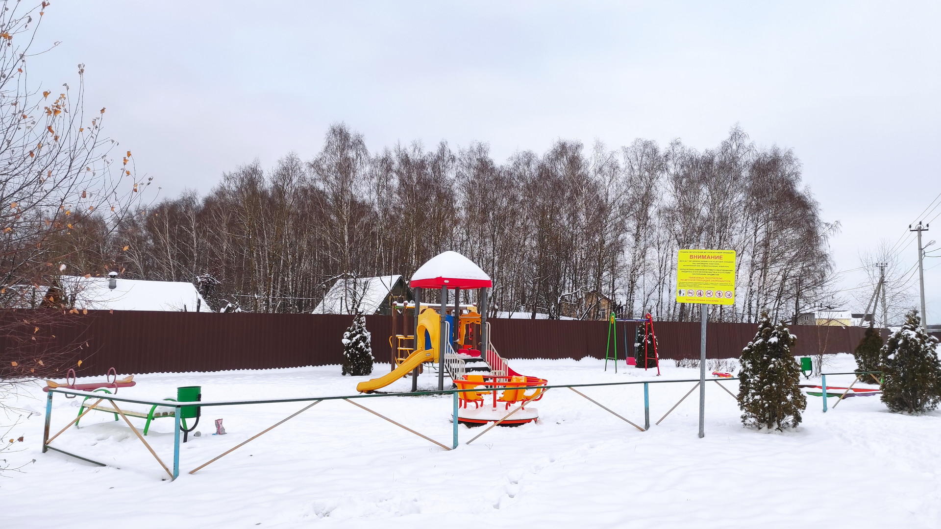 + По кругу участка установлен забор.