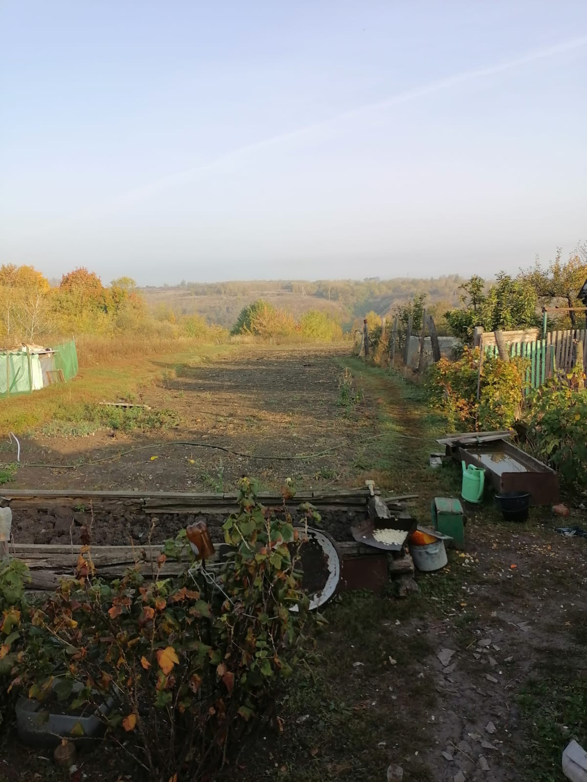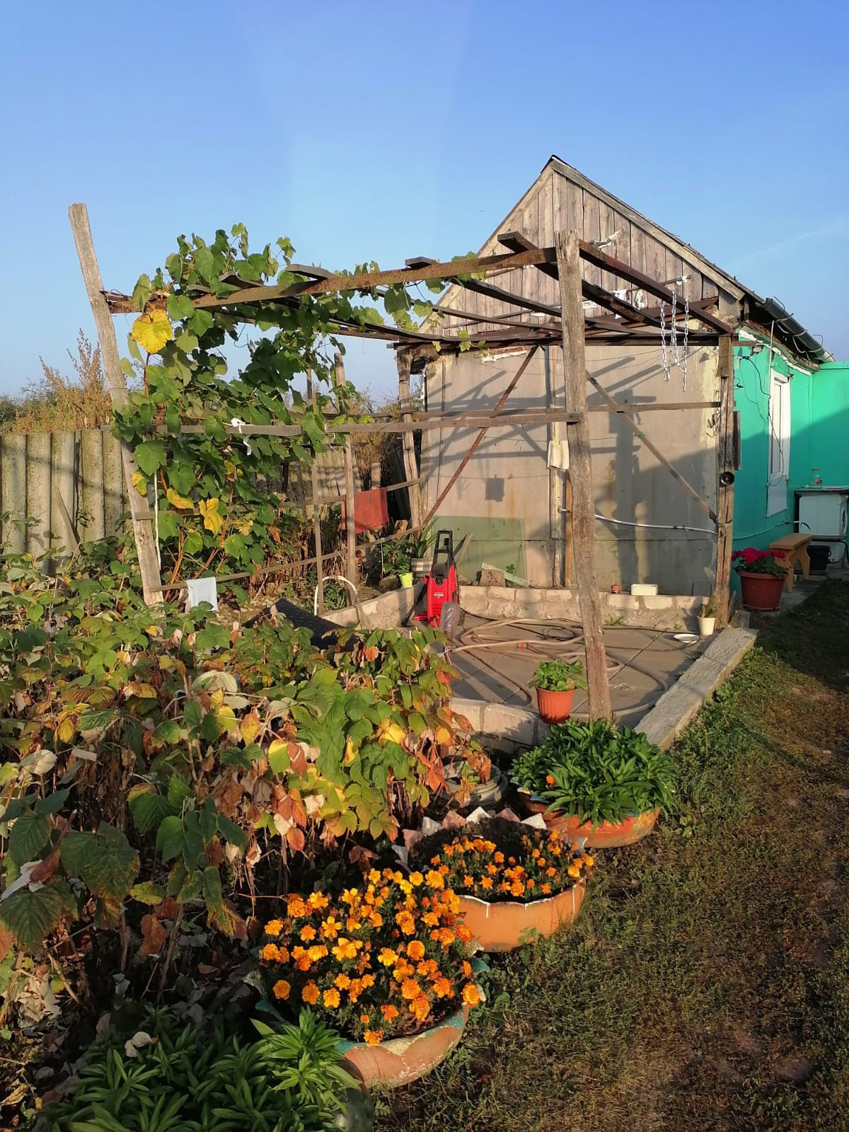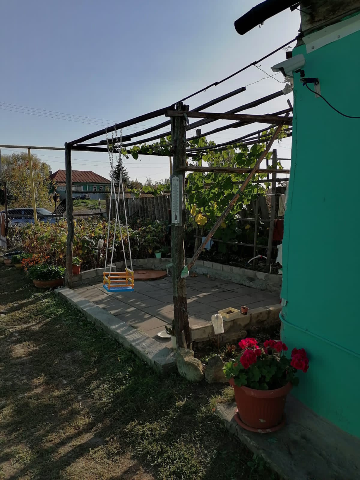 На участке множество плодовых деревьев, огород