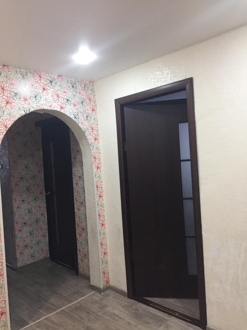 Окна ПВХ, межкомнатные двери филенчатые, везде, кроме зала, натяжные потолки, частично с мебелью.