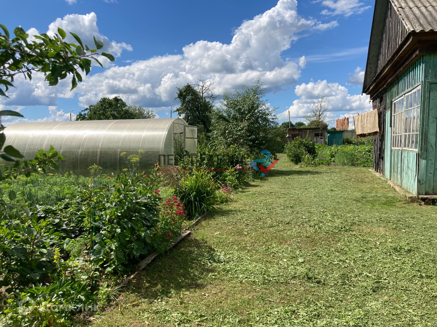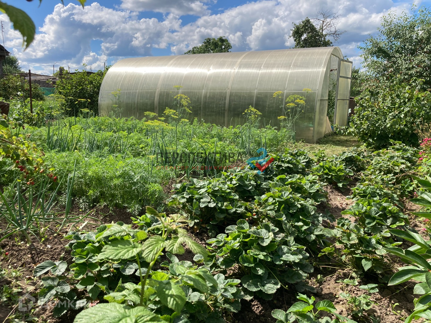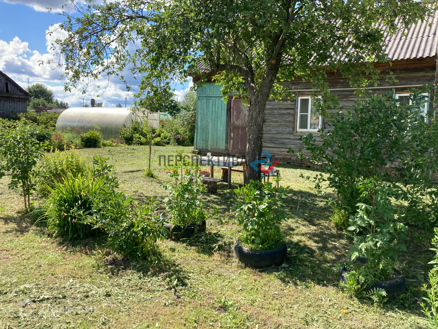 На участке добротно построенный парник. Также есть бревенчатая постройка, для подсобного хозяйства.