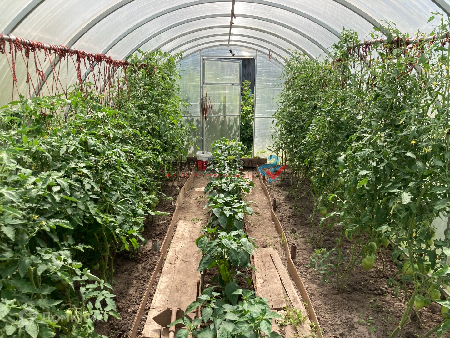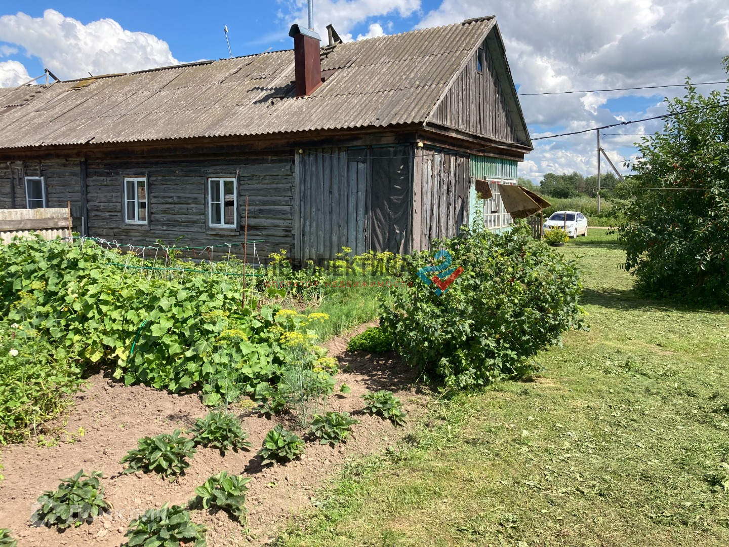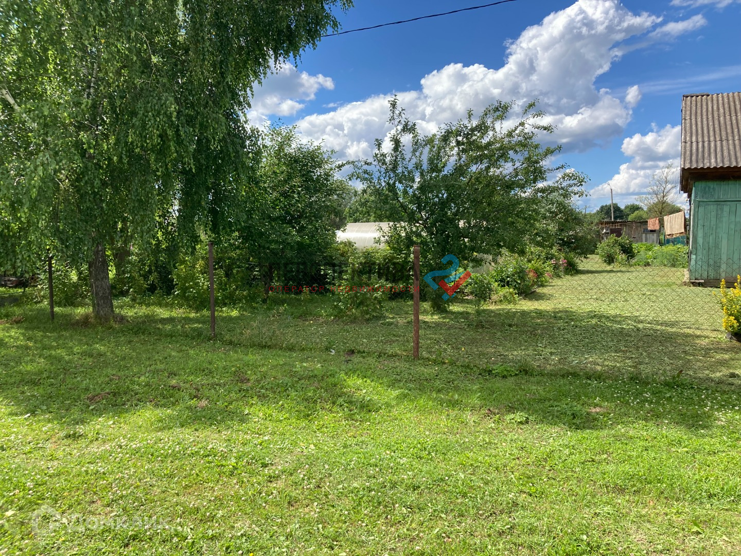 На участке добротно построенный парник. Также есть бревенчатая постройка, для подсобного хозяйства.