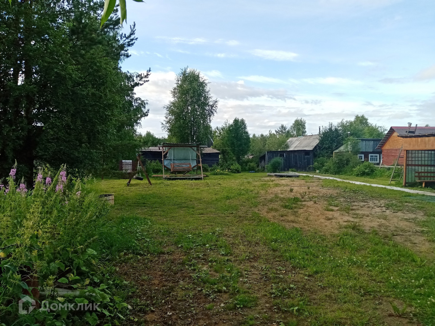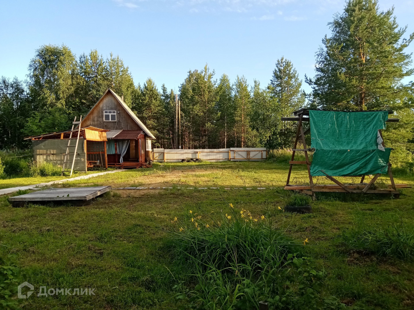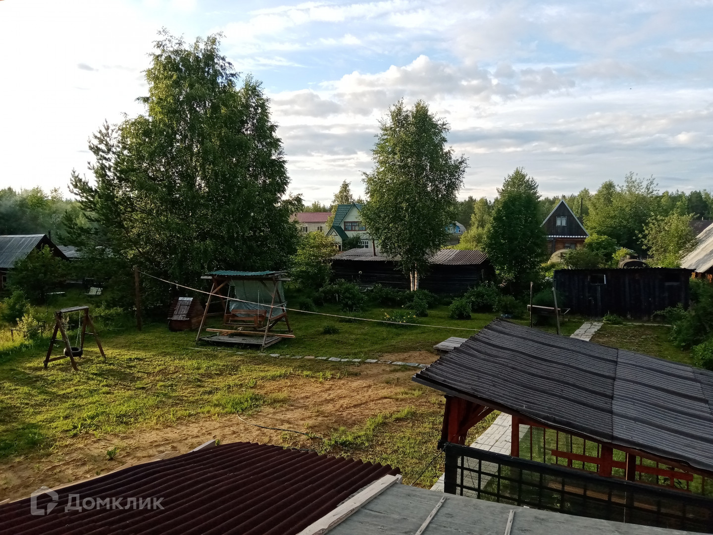Для детей на участке установлены качели.