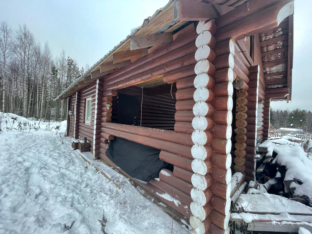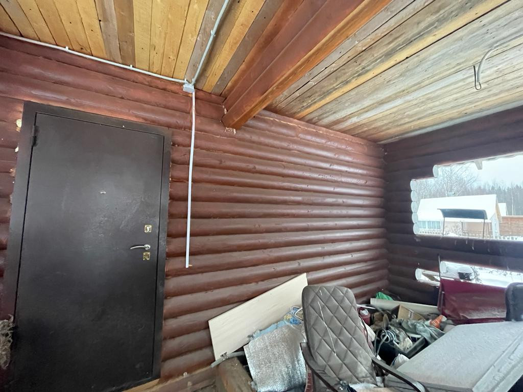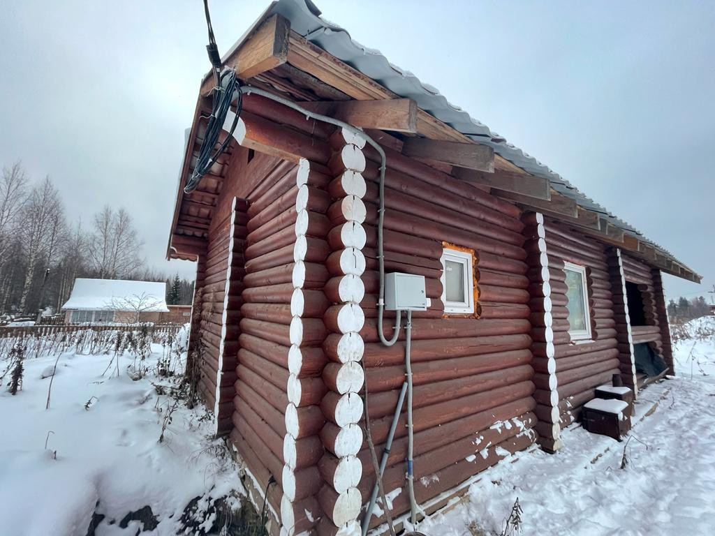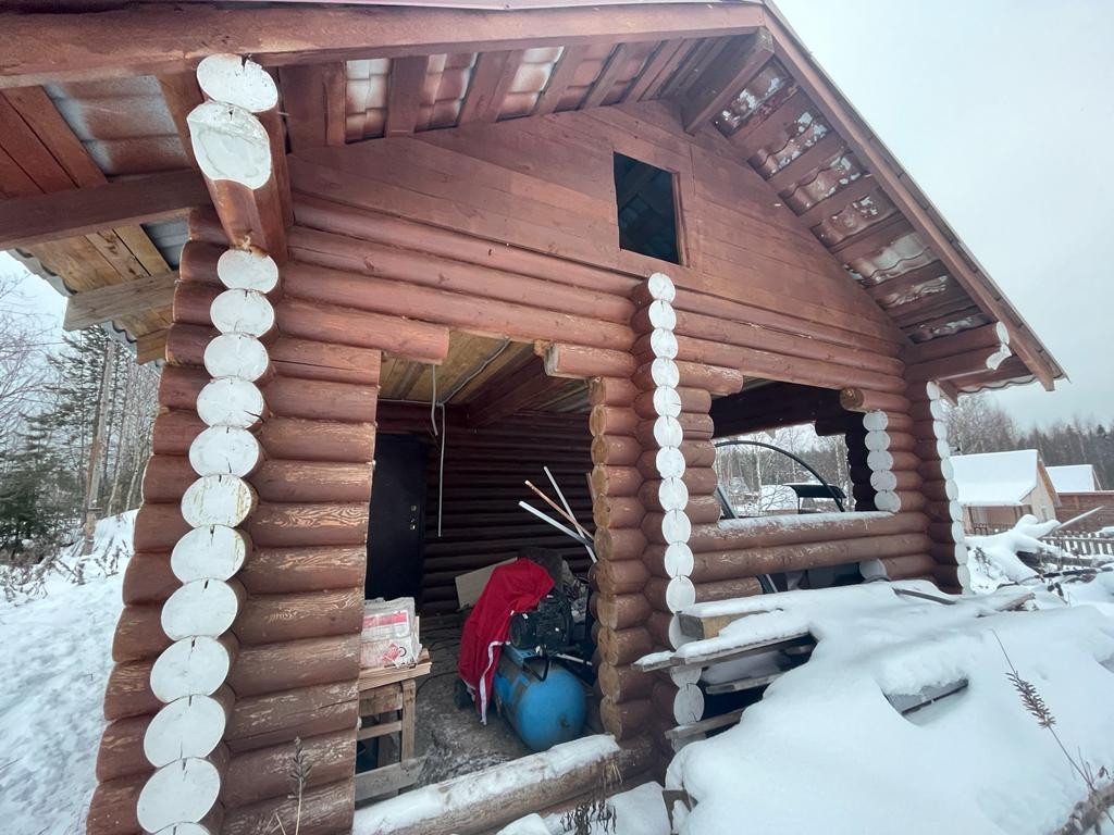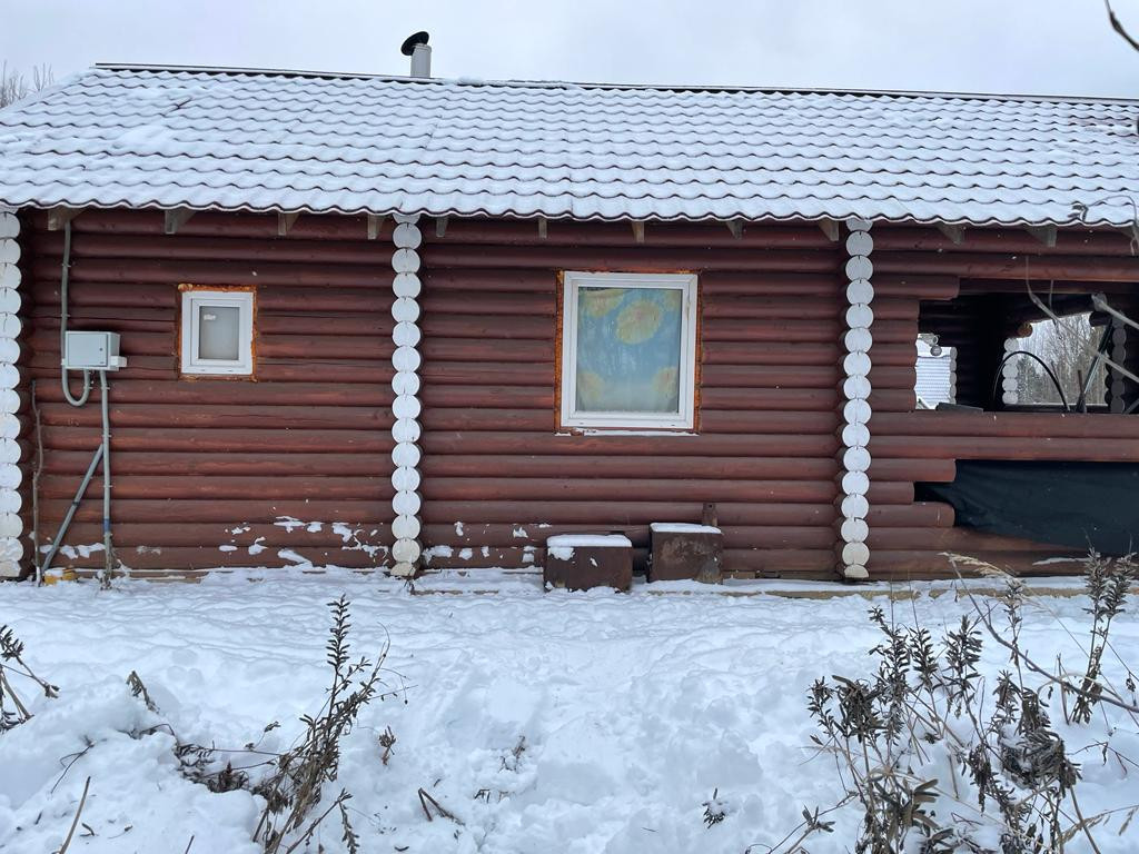 Дом-баня из калиброванного бревна расположен на участке площадью 10 соток в центральном проезде сдт "Русь". Водоснабжение из скважины заведено в дом.