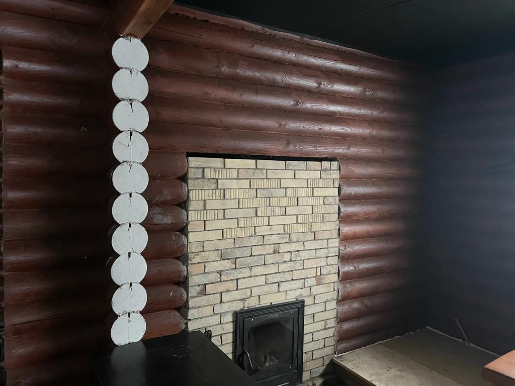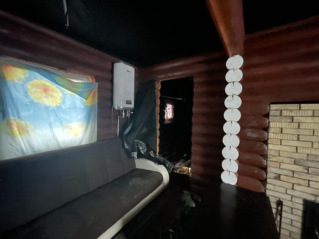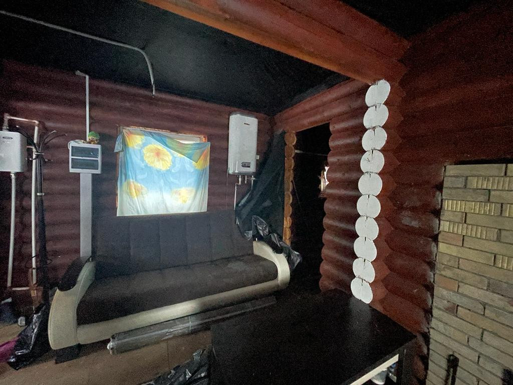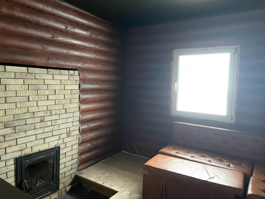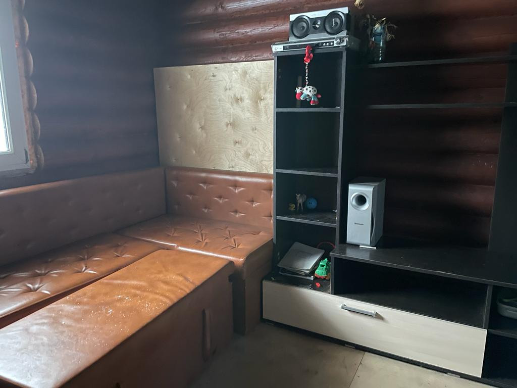 Дом-баня из калиброванного бревна расположен на участке площадью 10 соток в центральном проезде сдт "Русь". Водоснабжение из скважины заведено в дом.