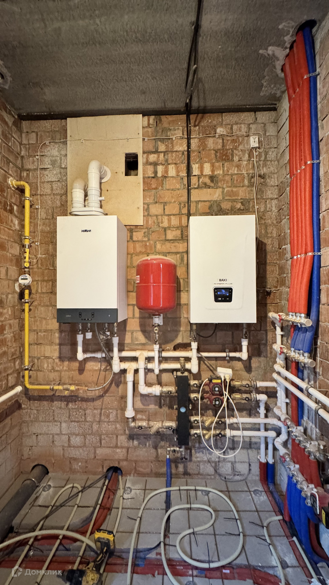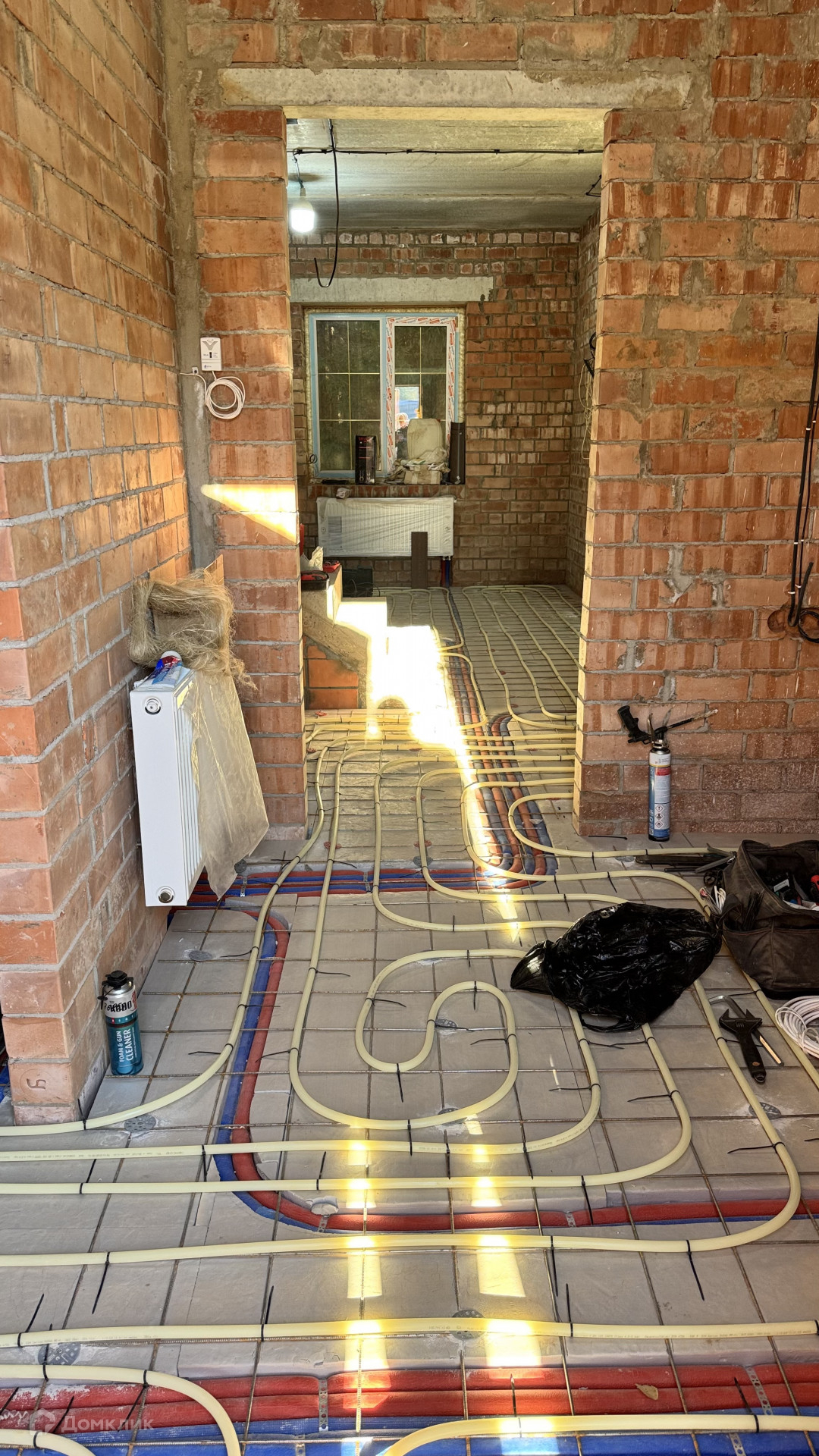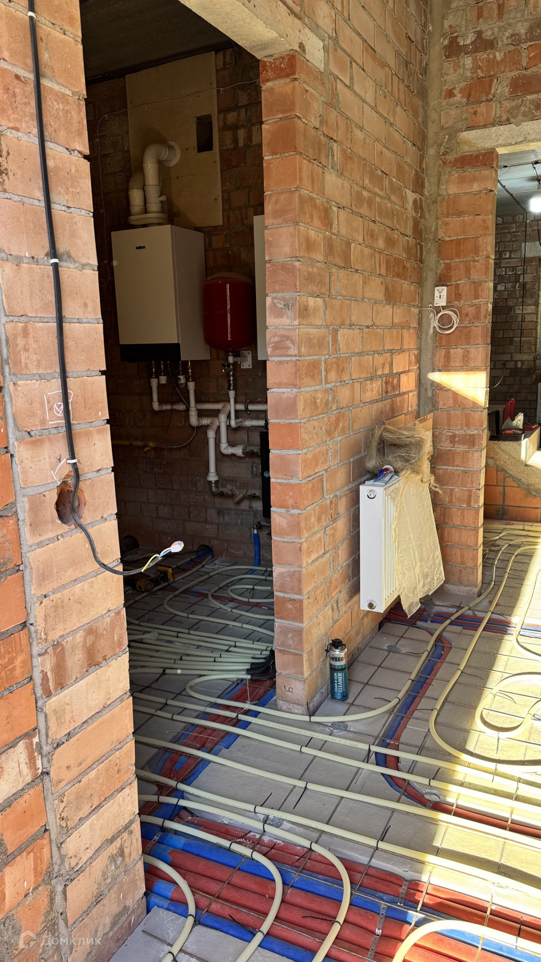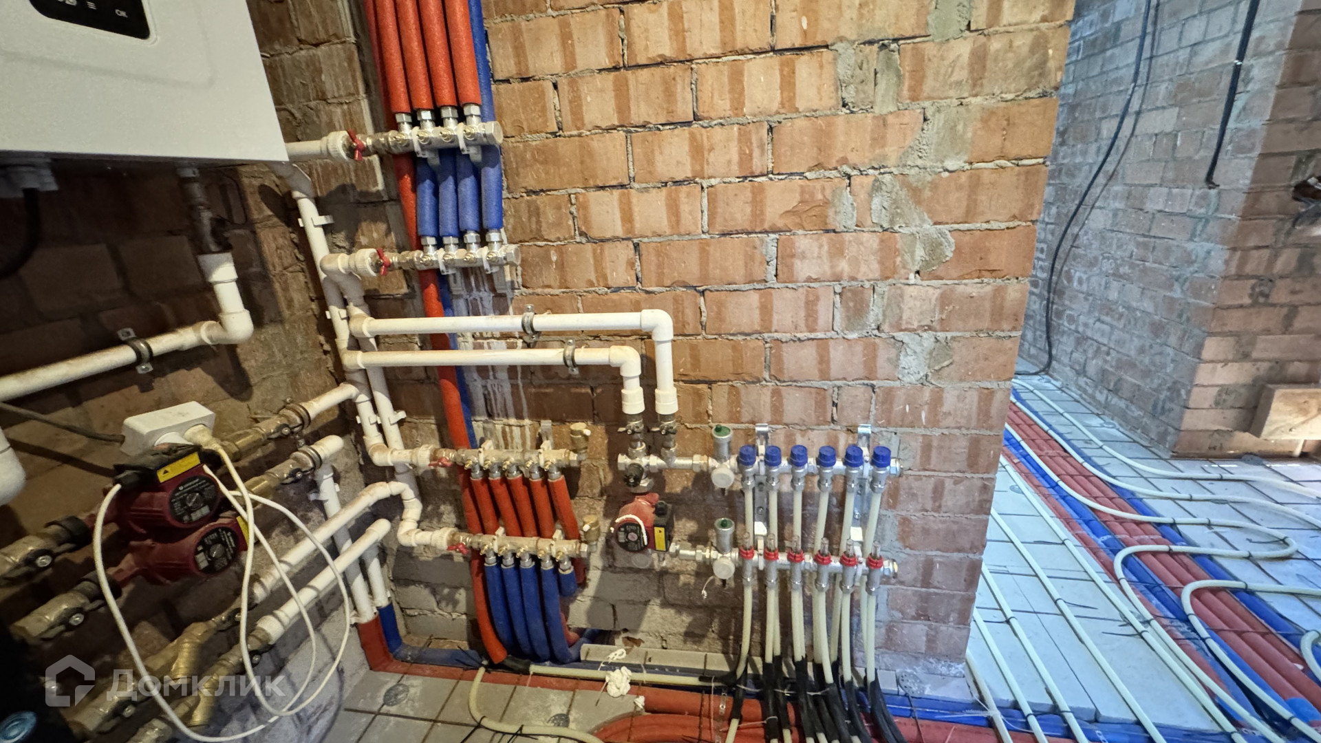 В дом заведен газ, скважина 43 метра, септик, сделаны работы: электрика, теплые полы, стяжка полов будет входит в стоимость, установлены котлы газовый и электрический, высокие потолки, есть выход на террасу, на втором этаже три спальни и санузел с окном