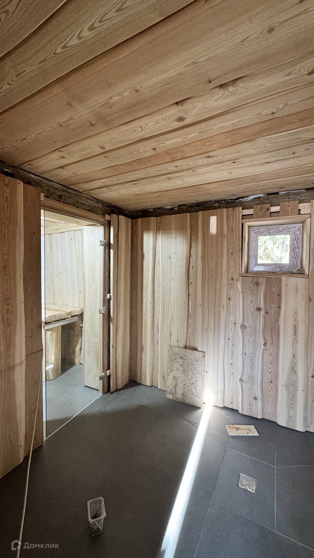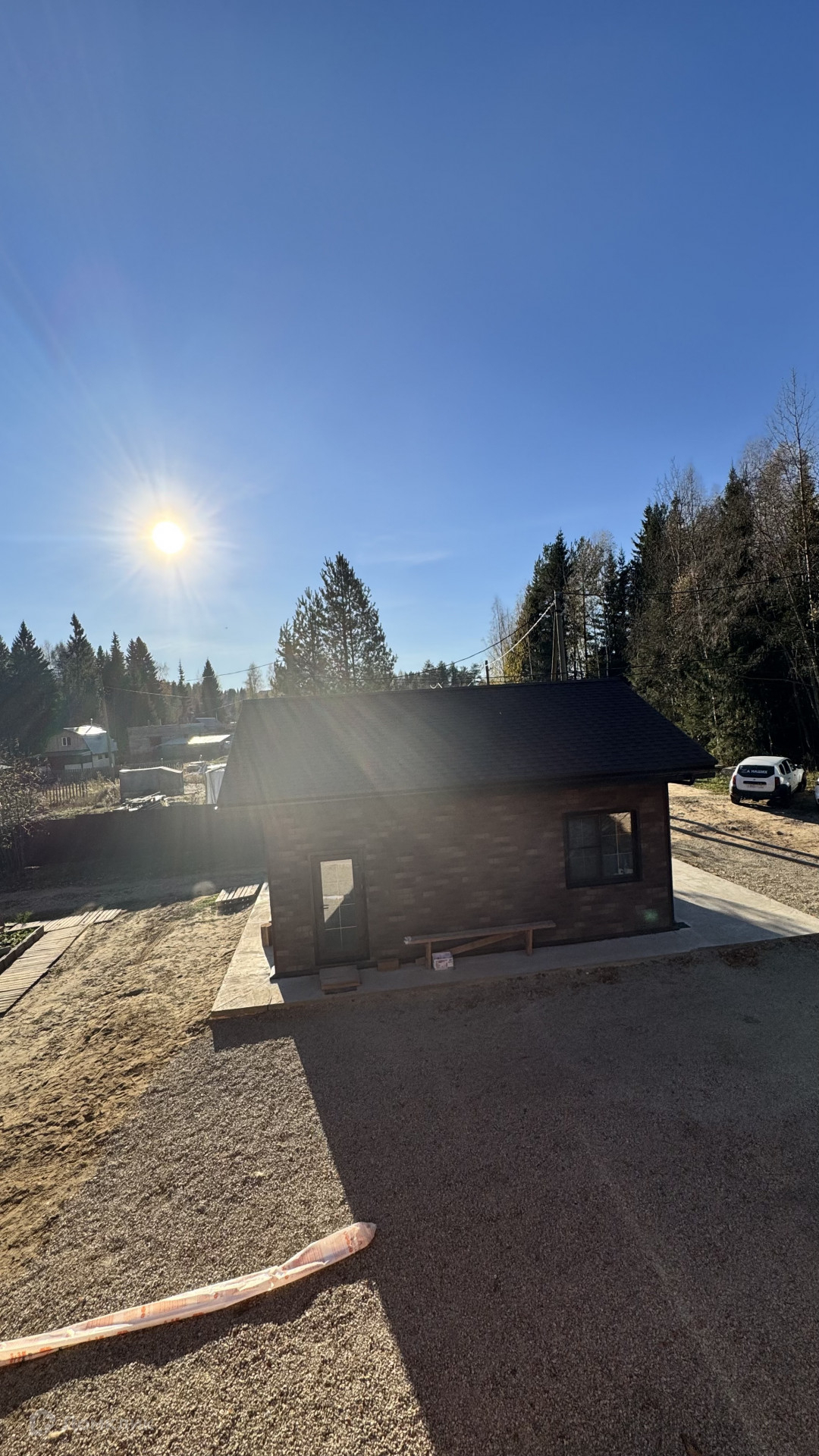 Подходит к завершению строительства баня из тесанного бревна зимней рубки крупного сечения, покрыта как с наружи так же как и внутри качественными дорогими эмалями зарубежного производства, кровля мягкая черепица Шинглас, качественная дорогая печь камин, есть санузел, кухня, предбанник с душевой, парилка и предбанник обшиты доской в фактурном стиле избы, полки из цельного среза дерева (СЛЭБ), потолок из можжевельника, соль с подсветкой, на полу также планируется подсветка!