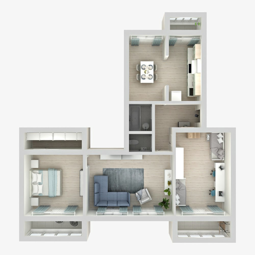 Балкон, лоджия 3 балкона