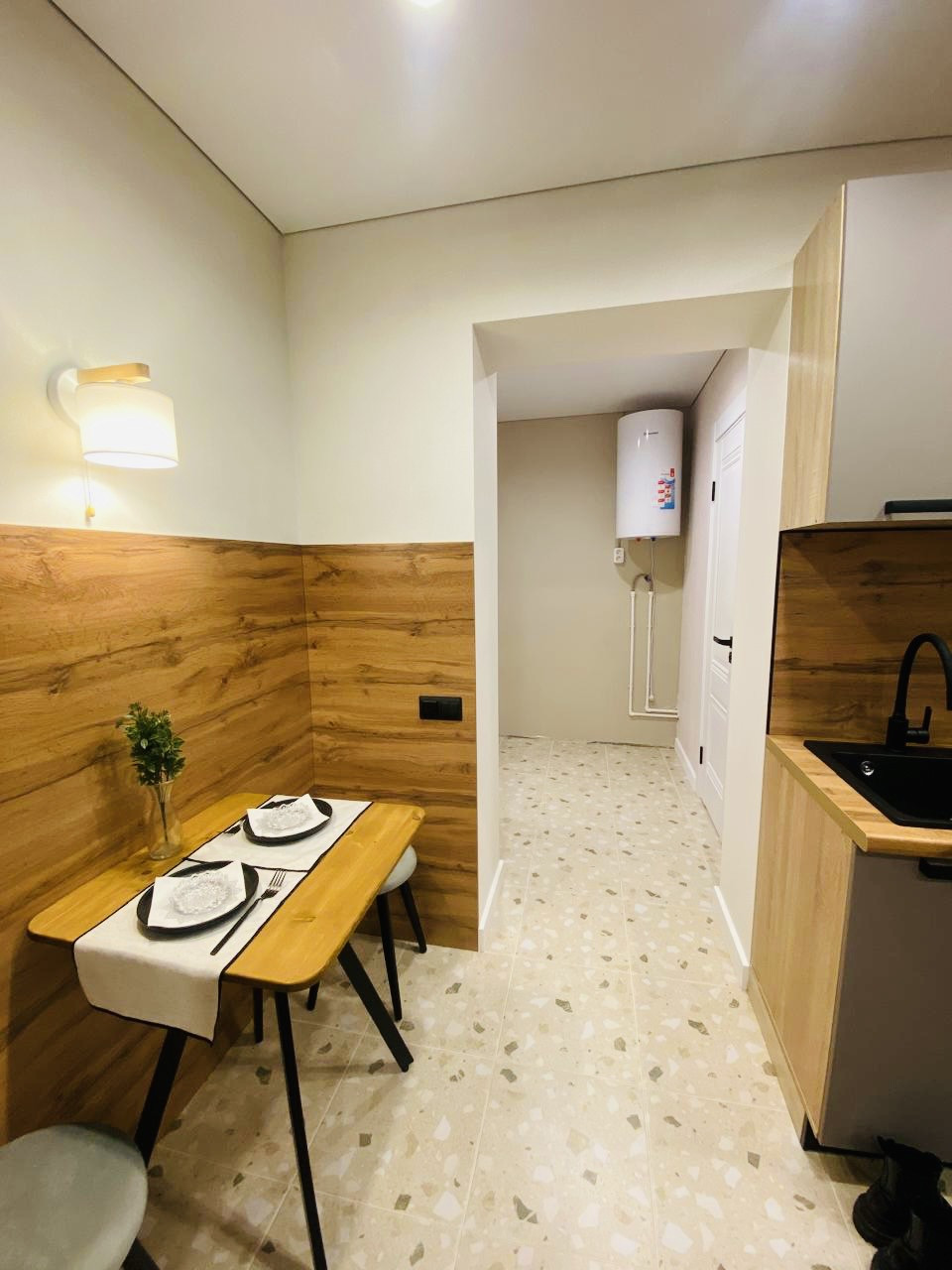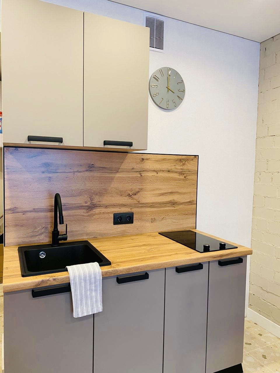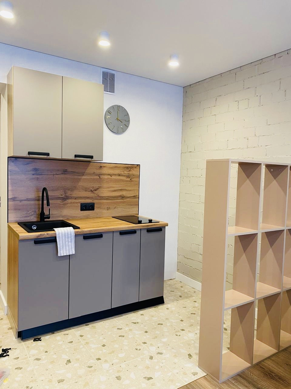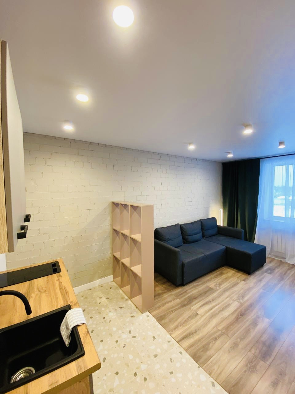 Компактная ,уютная кухня ,варочная плита,мойка камень,полы с подогревом!