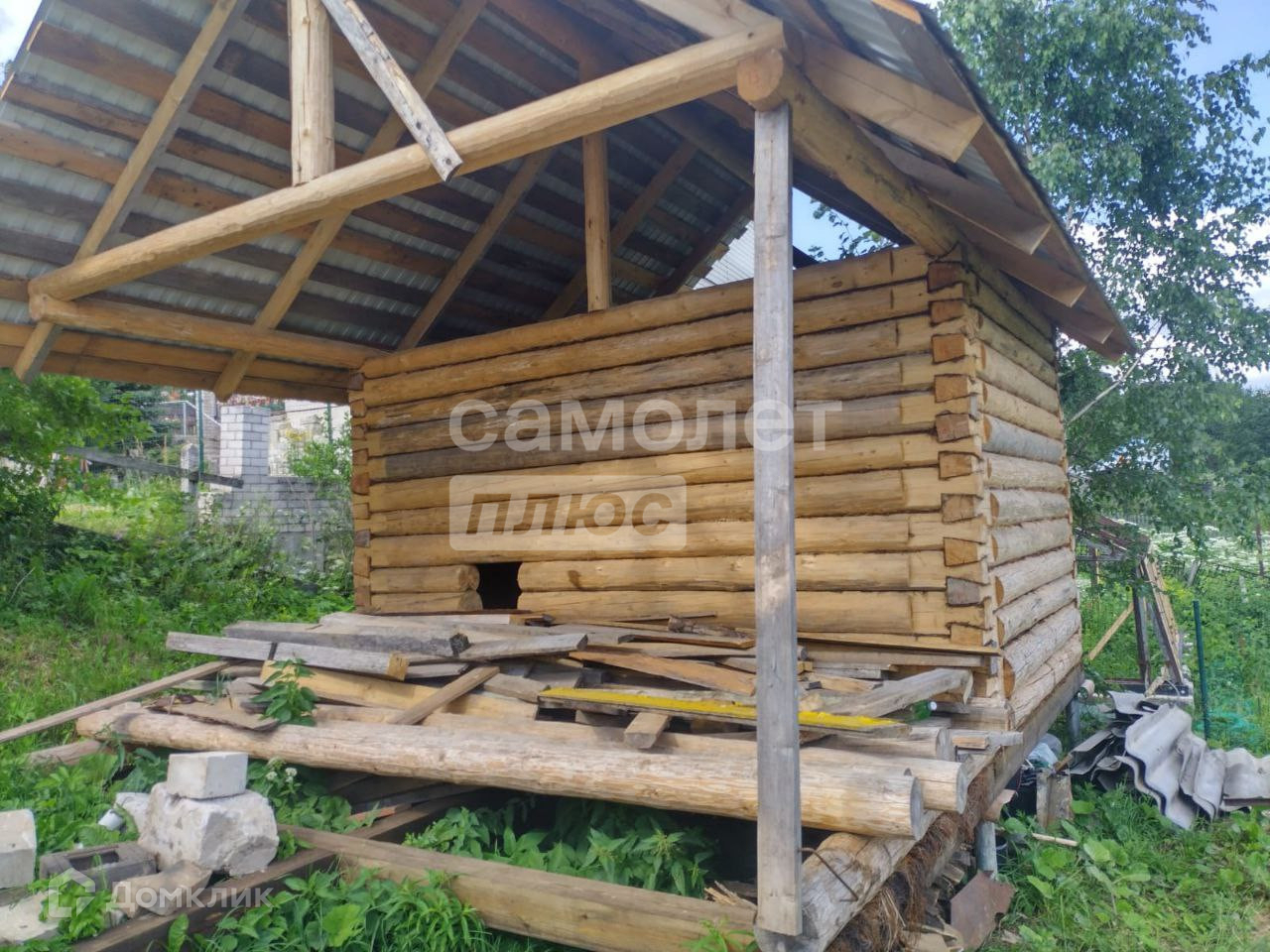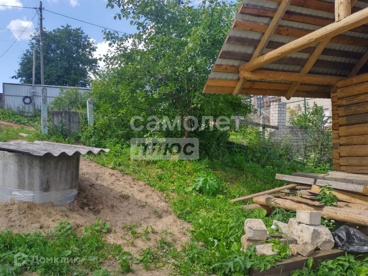 Участок имеет уклон. В конце участка протекает ручей. Участок находится между двух газифицированных коттеджей. На участке имеется колодец . электричество, газ. Построен сруб бани  на ж/б сваях. Сруб новый 2023 года. Имеется забор. Имеется разрешение на строительства дома.