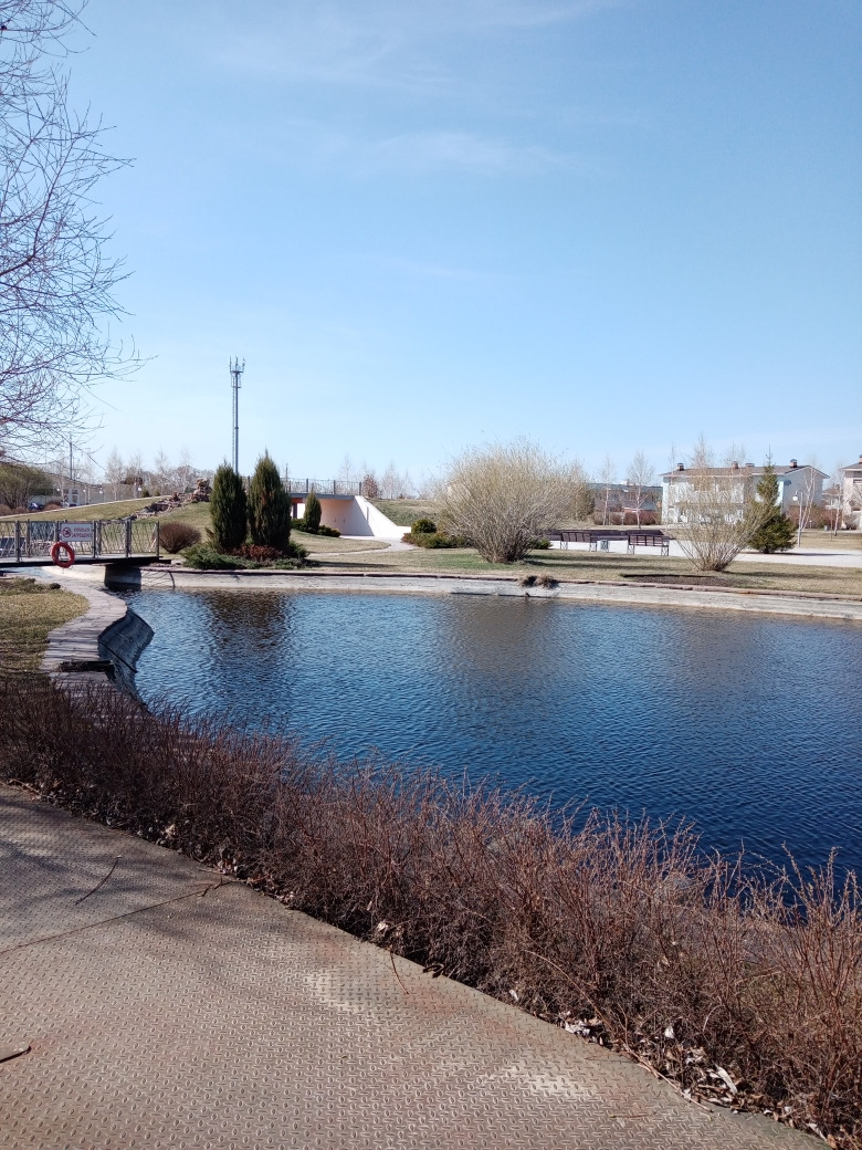Очень тихое и спокойное место!  Огороженная территория. Благоустроенная парковая зона, красивые газоны, много зелени и цветов, большой пруд, красивые улочки.