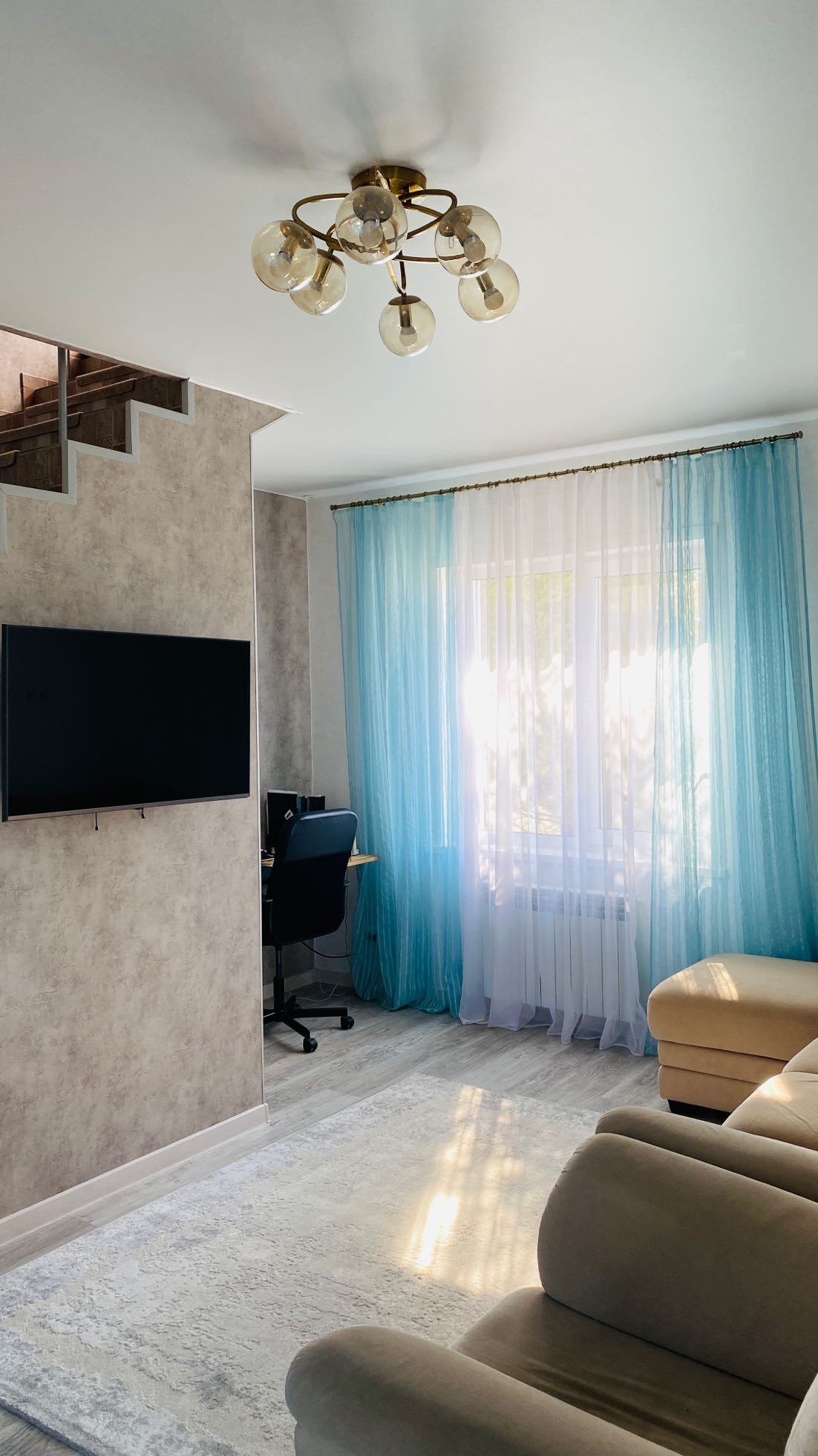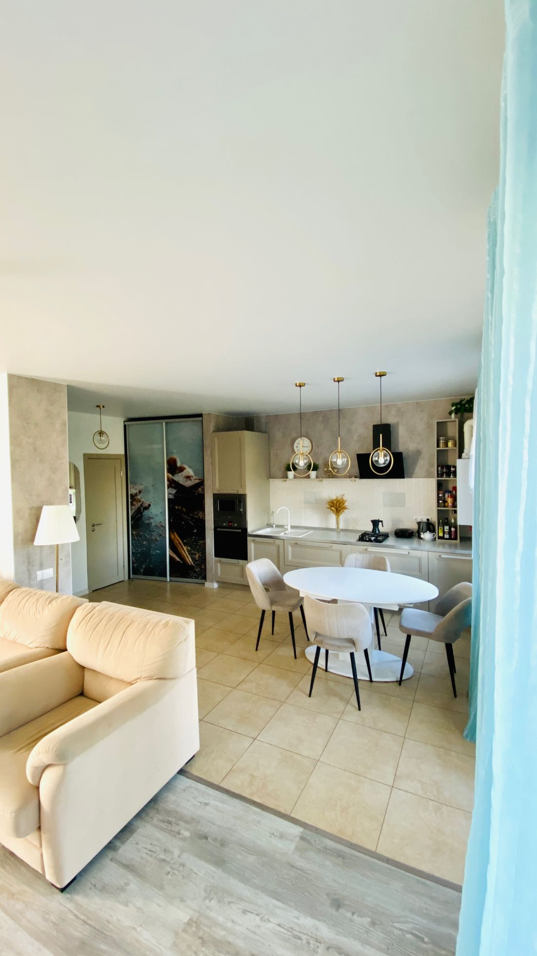 Почти вся мебель ,техника, люстры , шторы остаются! Вам только разложить свои личные вещи и наслаждайтесь прекрасными рассветами и закатами !
