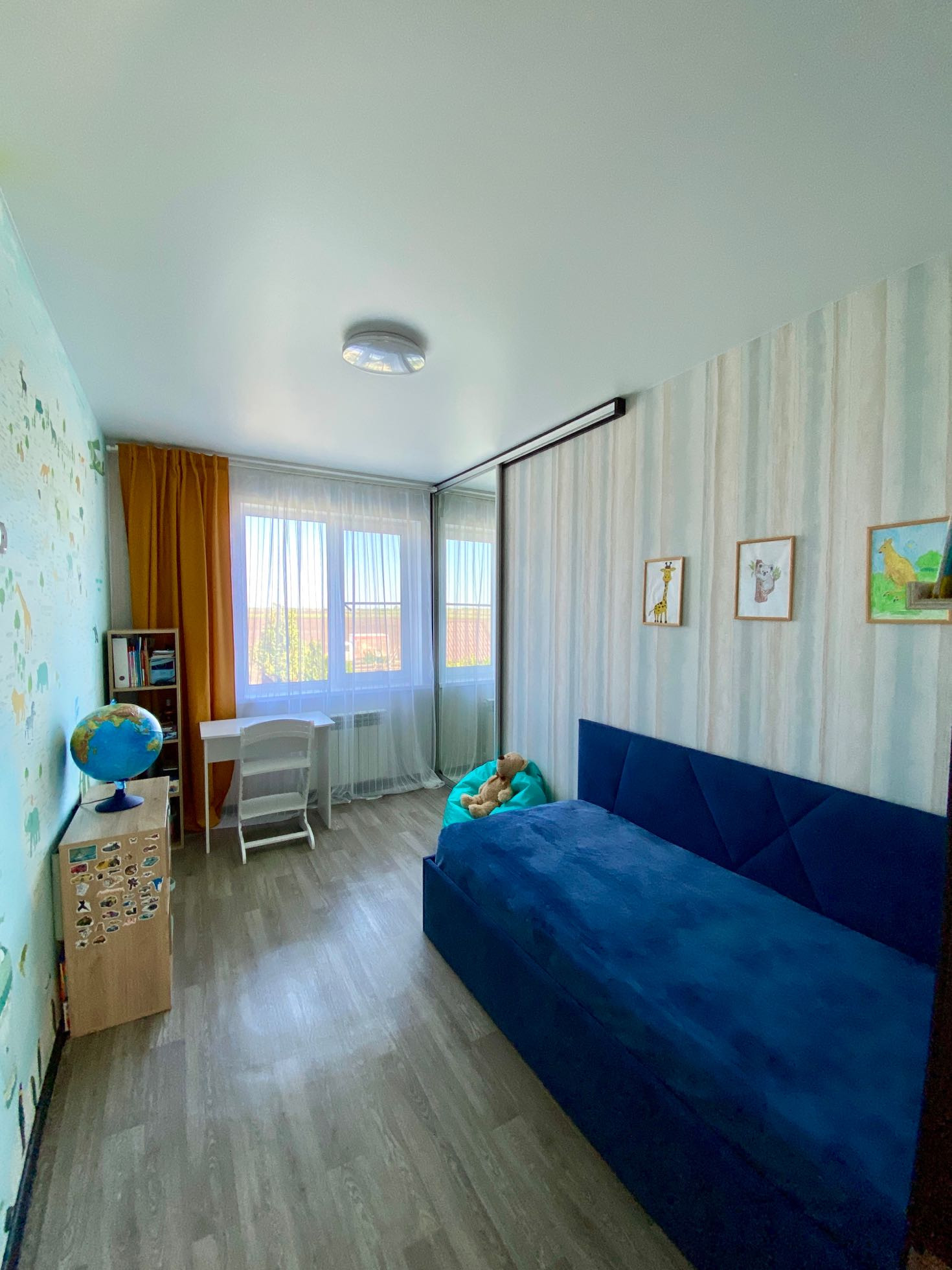 -спальня -14 кв.м , остается кровать ,шкаф-купе, тумба, комод ;