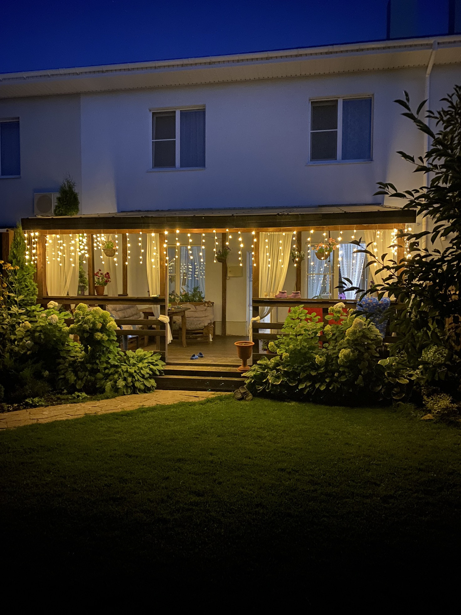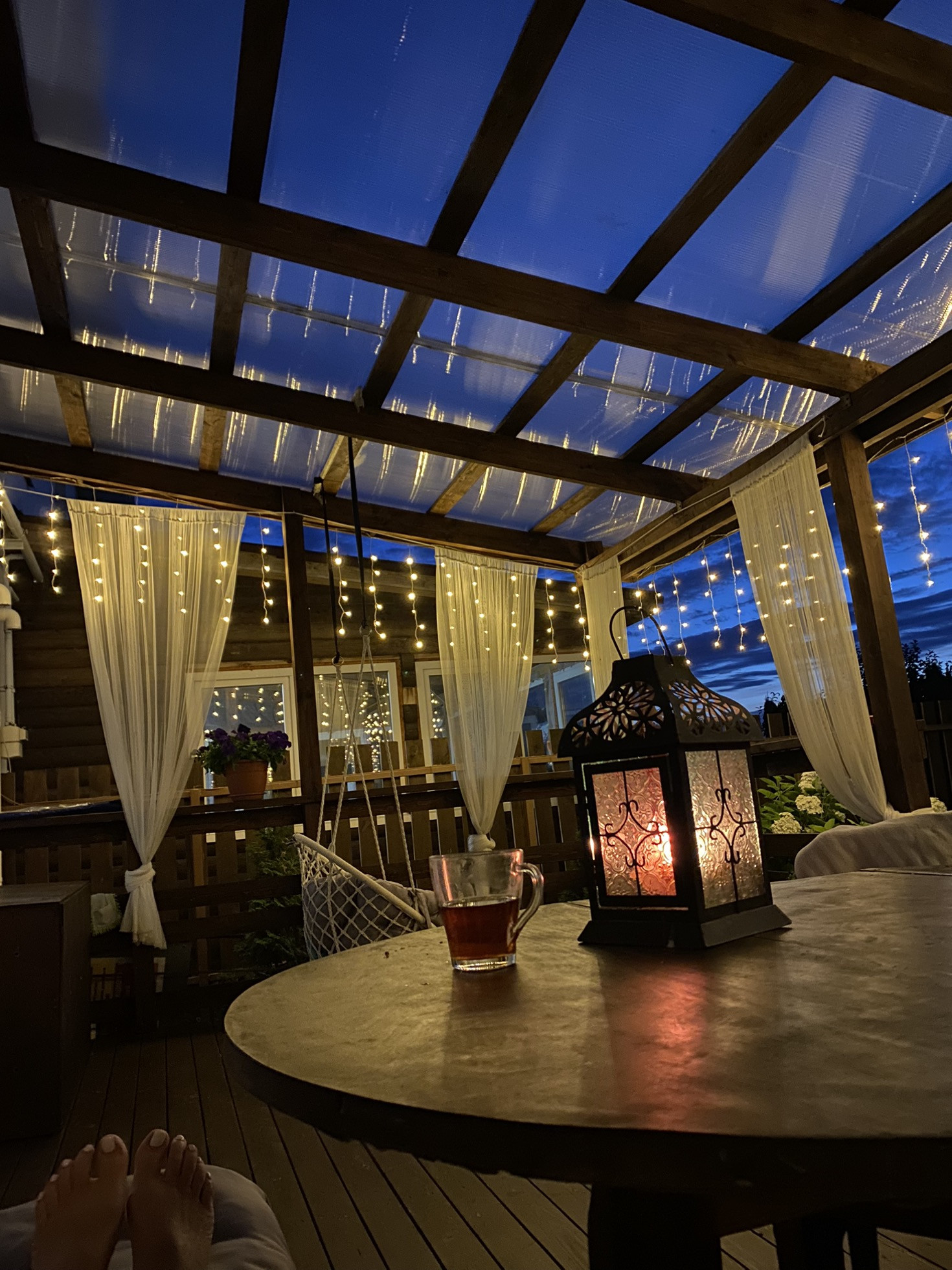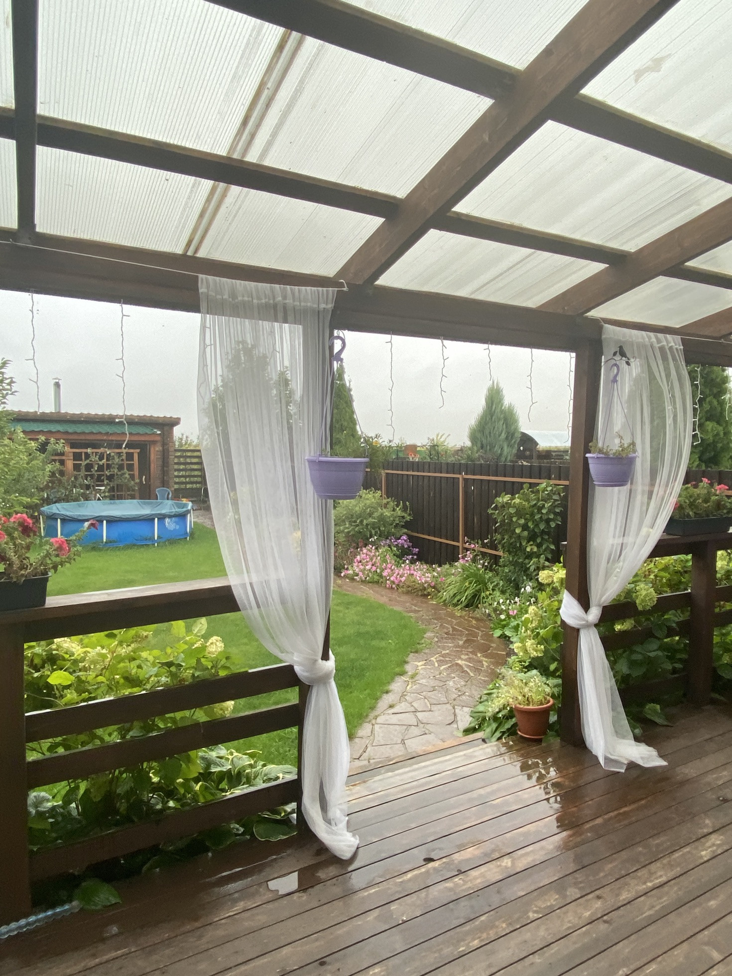 -уютная деревянная веранда с мягкой зоной отдыха,