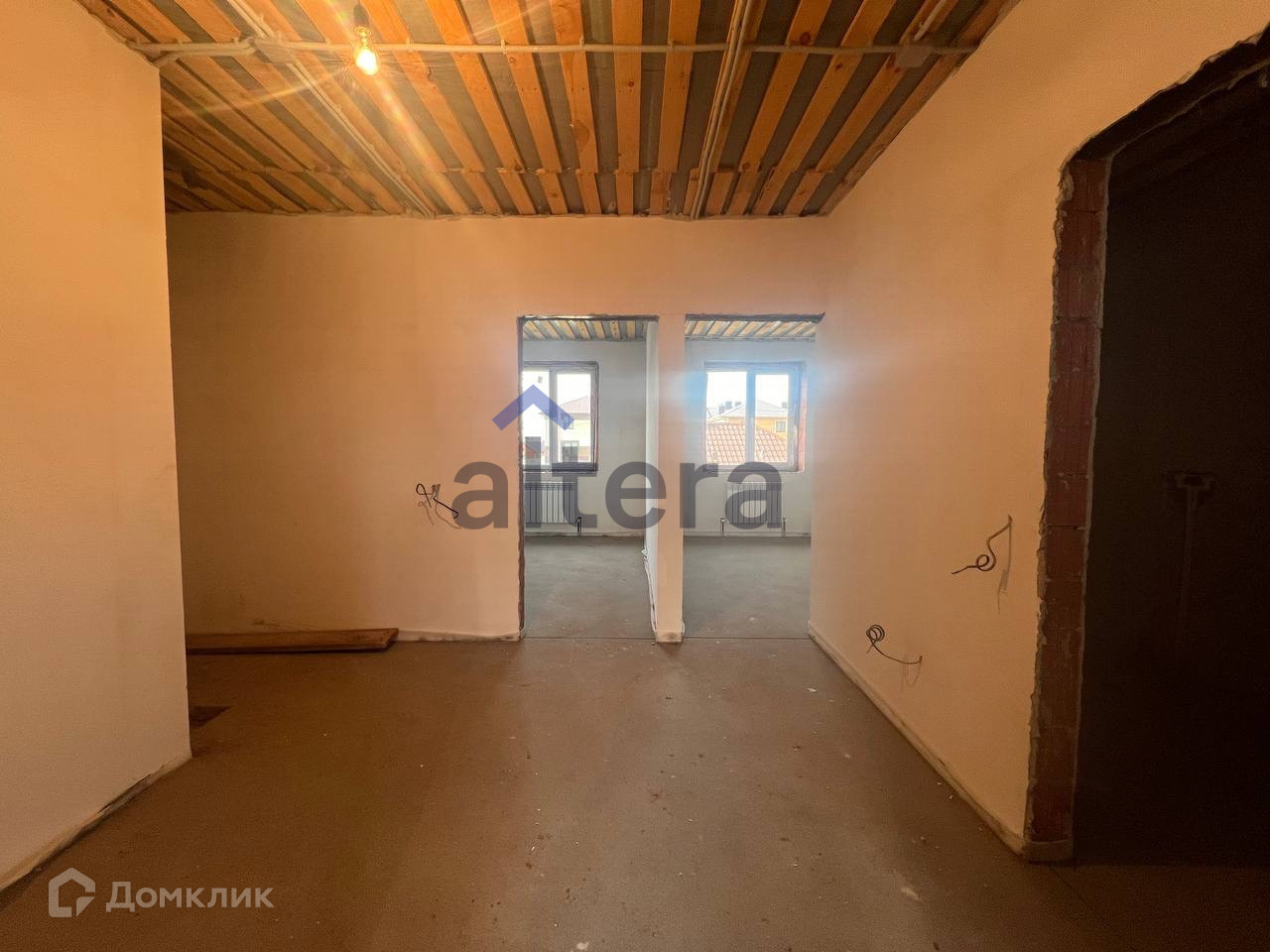 Выполнена качественная предчистовая отделка: ровная стяжка пола, пластиковые окна, 3 просторные спальные комнаты, кухня-гостиная.