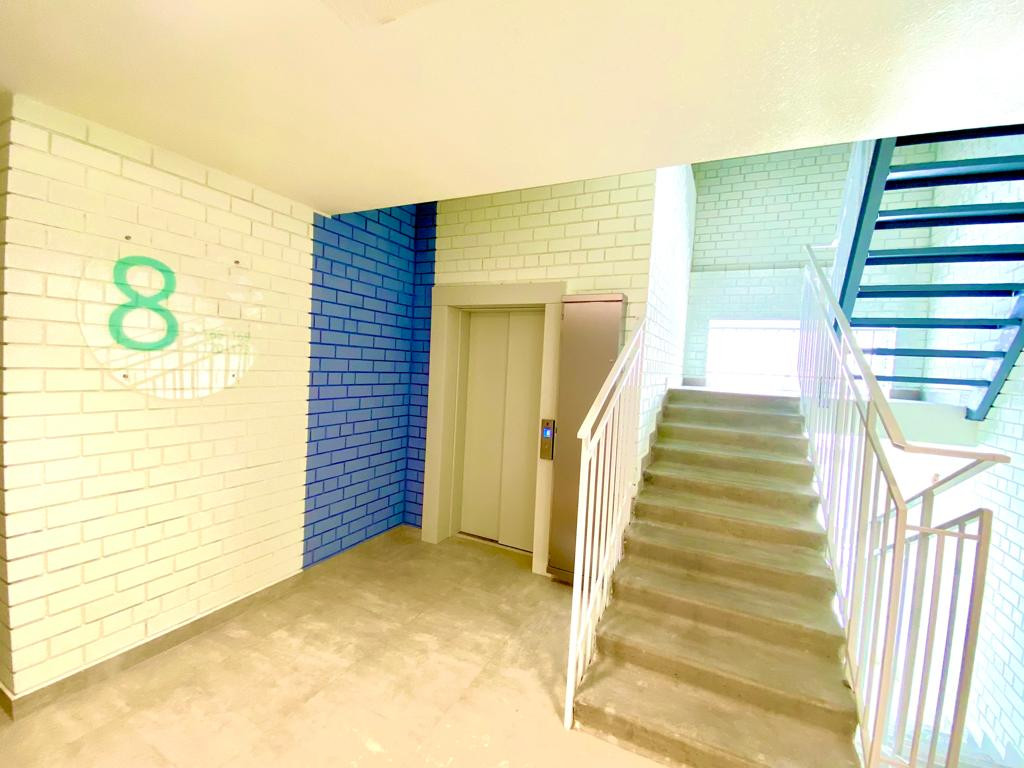 Расположена на 8 этаже 9 этажного дома кирпичного дома.