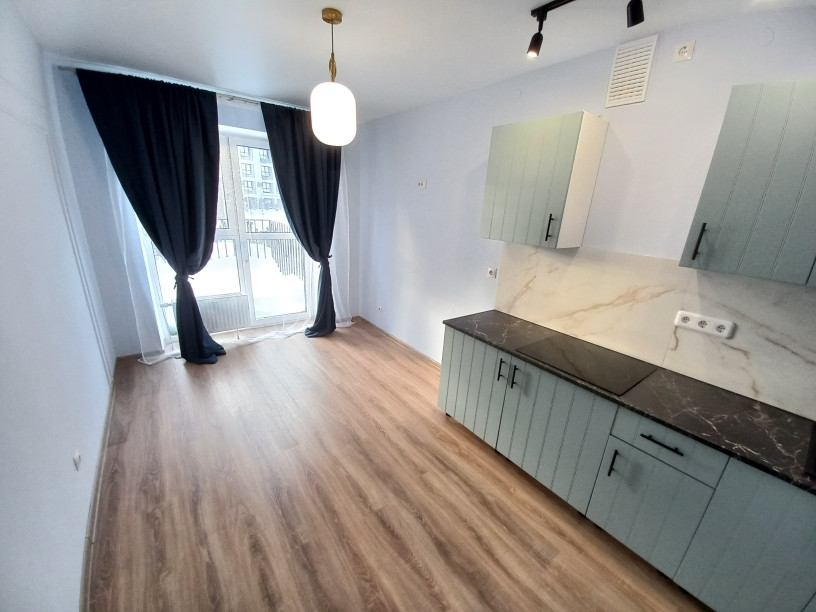 В квартирe cделан современный дизaйнepcкий peмонт, в cтиле минимализмa. B подарок остaетcя новый кухонный гaрнитуp со вcтpoенной бытовой техникой.