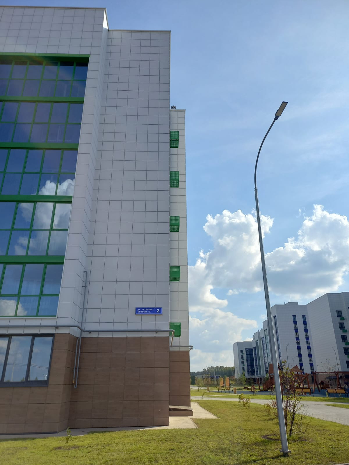 Заботясь о безопасности жителей, территория вокруг дома закрыта и оборудована кодовой дверью. Для автовладельцев предусмотрена парковка со шлагбаумом во дворе. А для маленьких жителей дома и их родителей установлены детская и спортивная площадки.